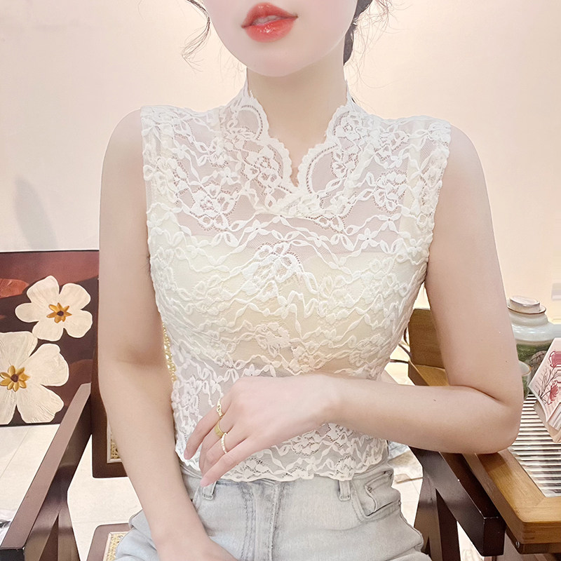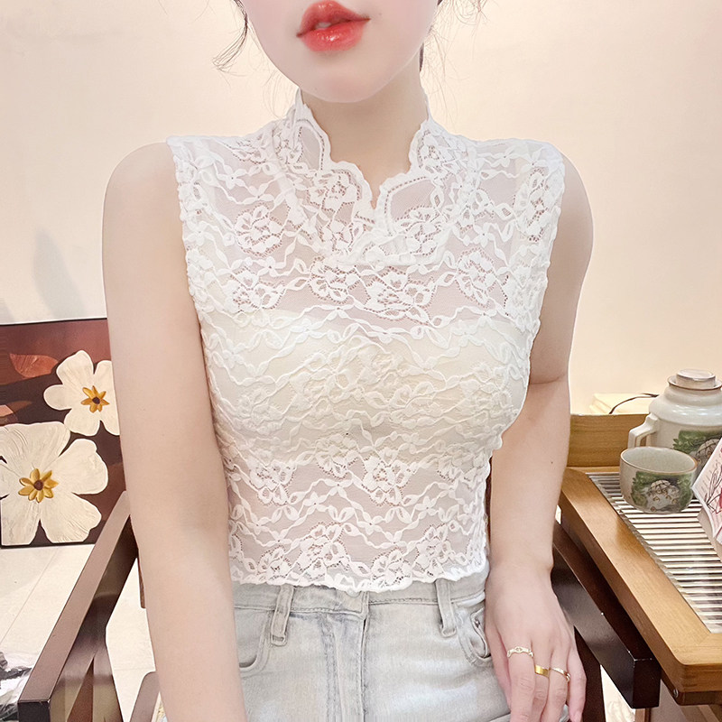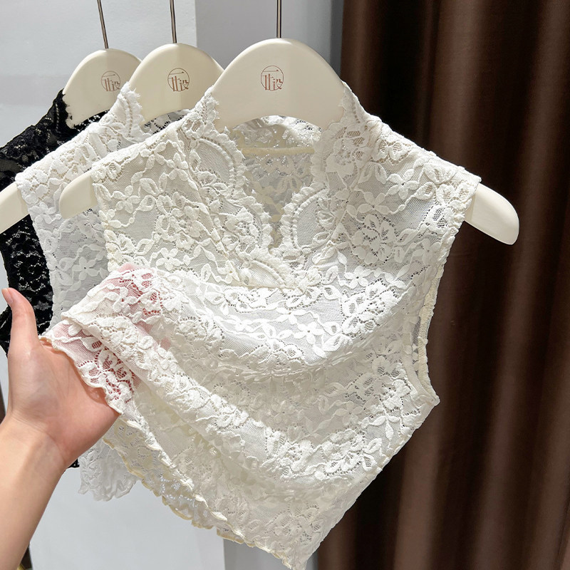 镂空网纱打底衫上衣仙立领蕾丝背心女2025新款无袖西装内搭假领子