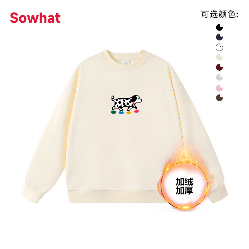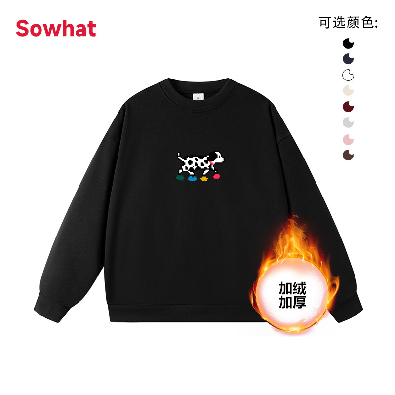 加绒加厚圆领像素斑点狗无帽卫衣