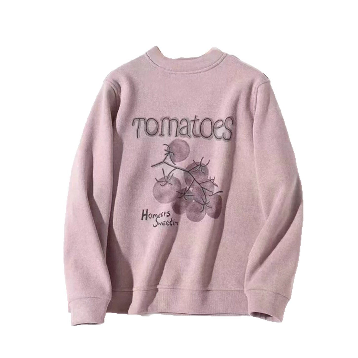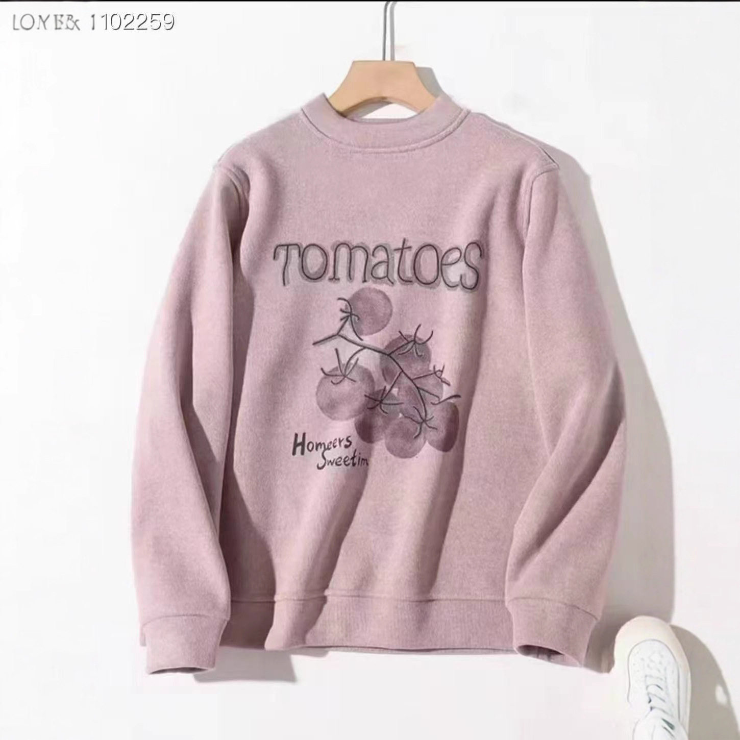园园美衣冬卫衣女加绒加厚保暖套头印樱桃长袖韩版学院风卫衣上衣