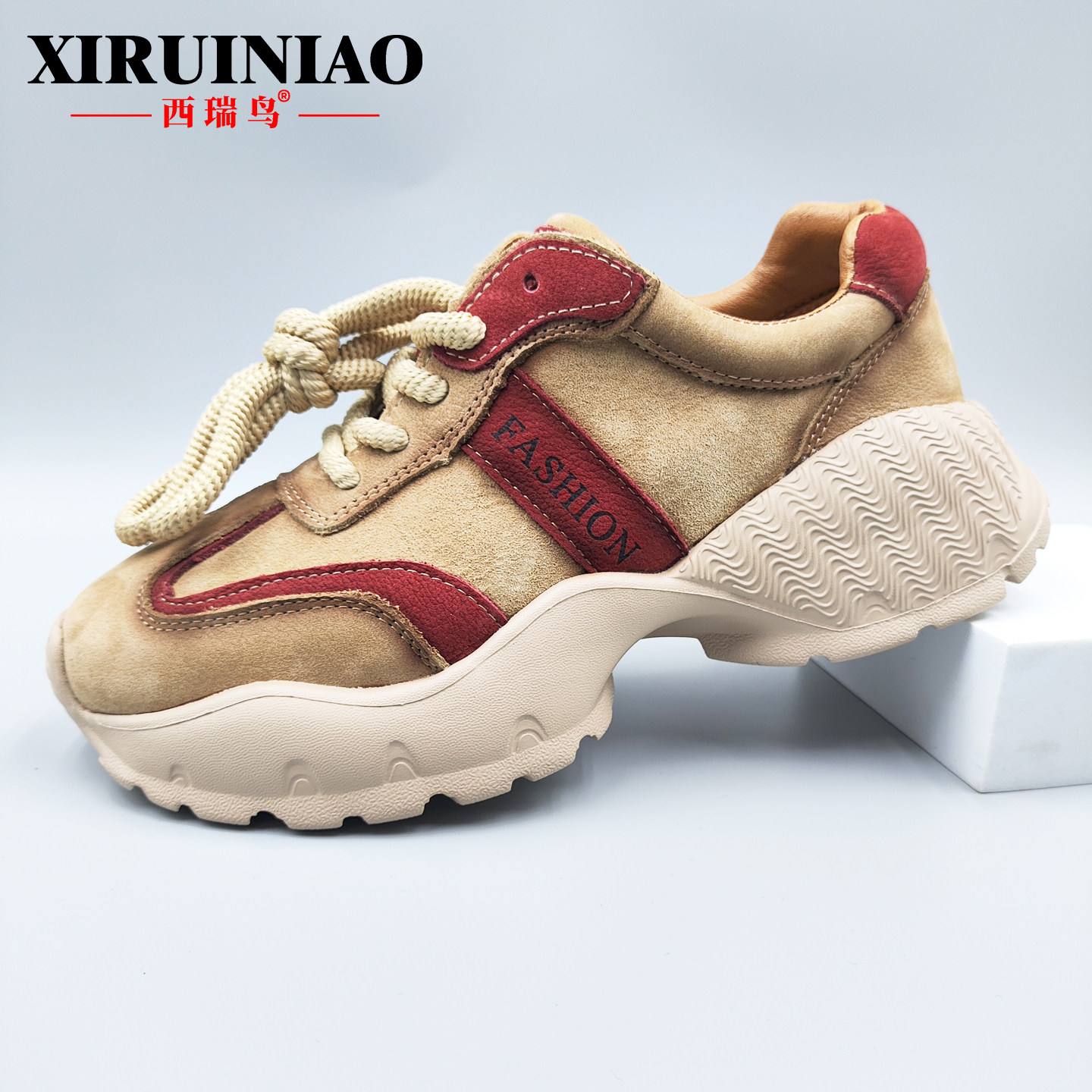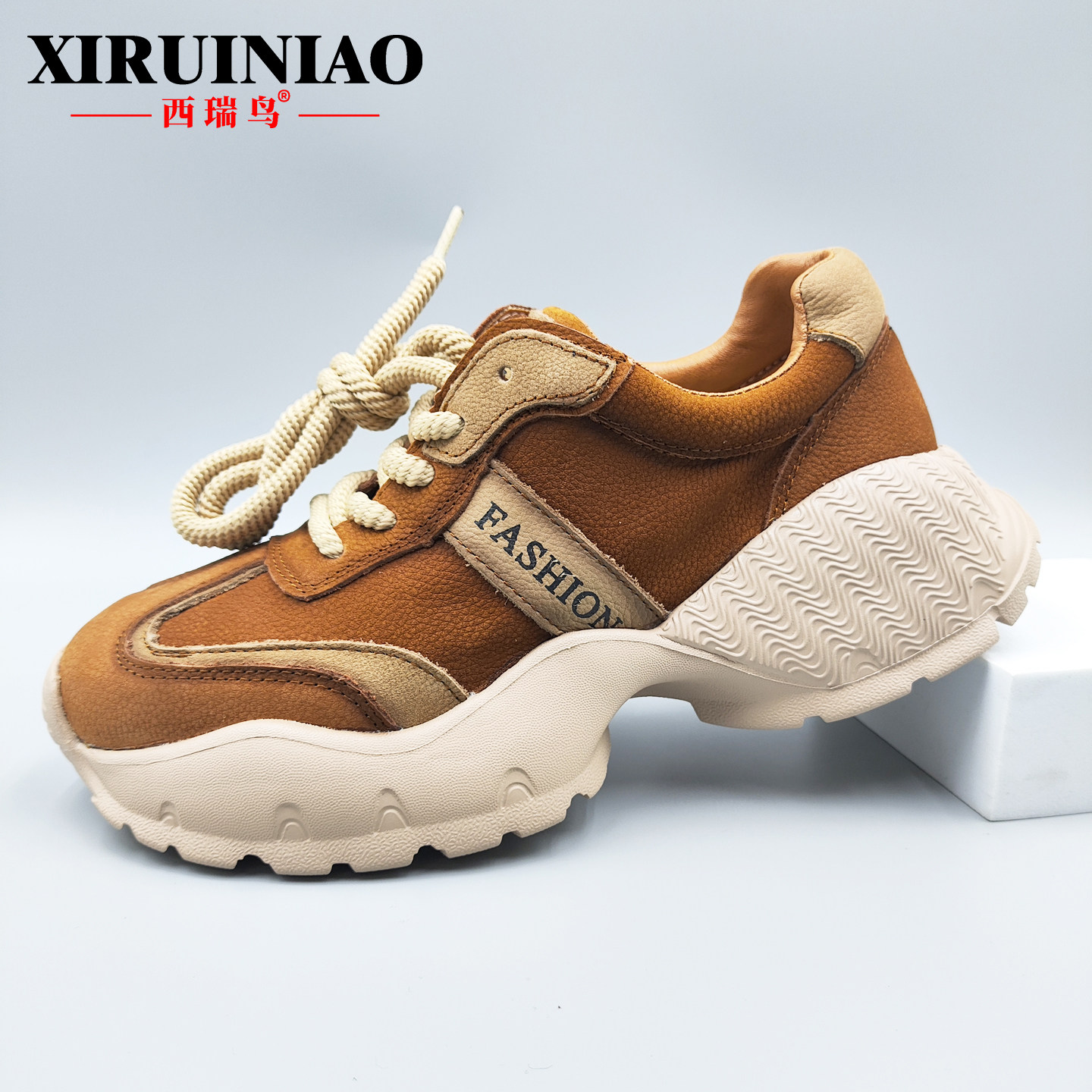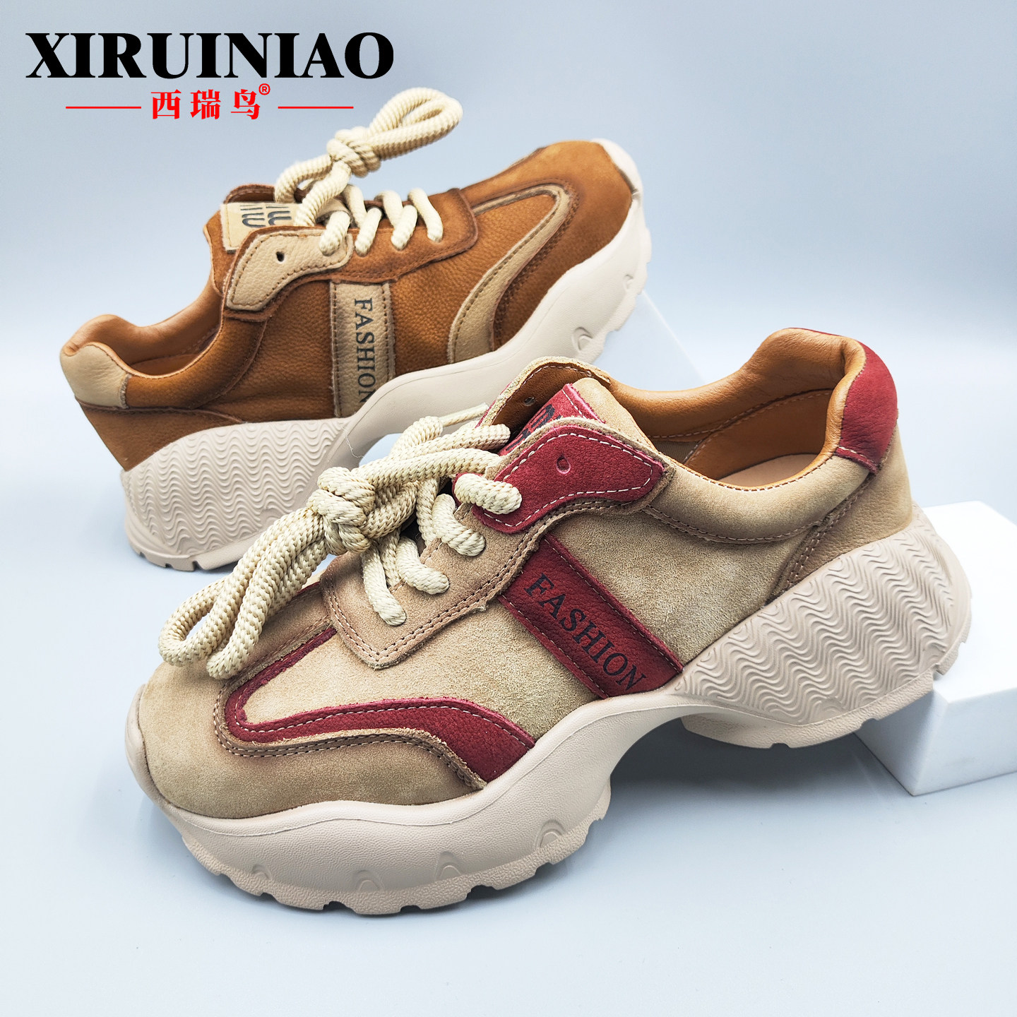西瑞鸟原创复古全牛皮春秋季运动休闲老爹鞋厚底时尚百搭增高女鞋