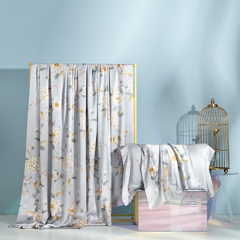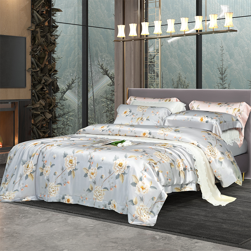 高端真丝四件套28姆米桑蚕丝色织提花丝滑裸睡被套床上用品套件