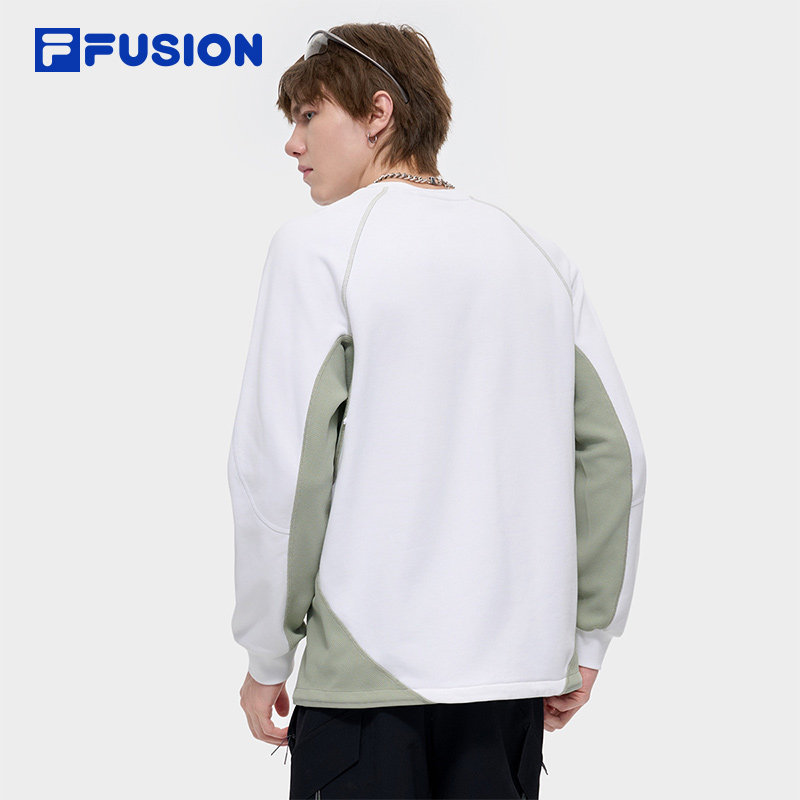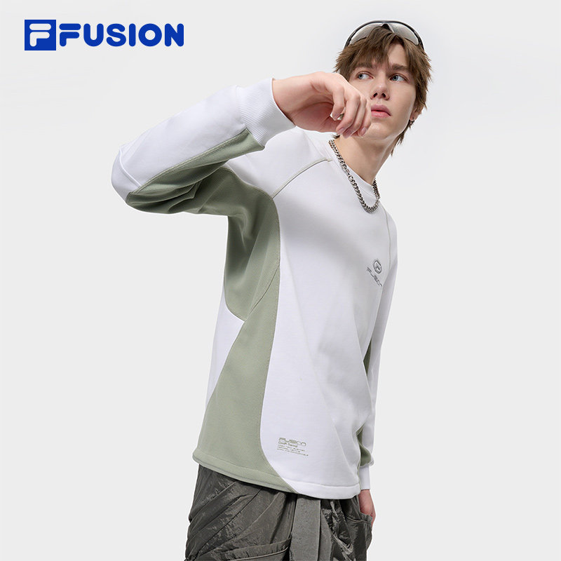FILA FUSION斐乐潮牌男子套头卫衣2024冬季新款休闲拼色针织上衣