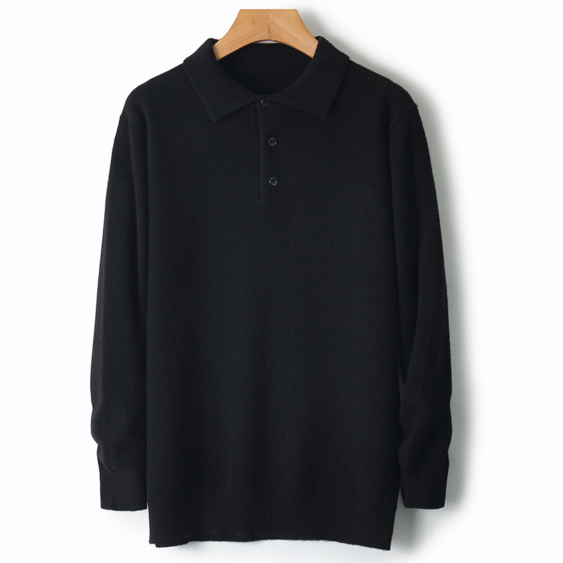 新款100%纯羊毛衫POLO领男宽松保暖针织衫商务休闲套头翻领毛衣