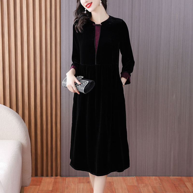 高级真丝绒连衣裙女2026秋冬新款洋气妈妈大码女装桑蚕丝中长裙子