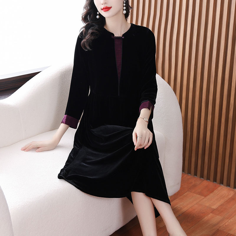 桑蚕丝真丝绒大码女装连衣裙时尚