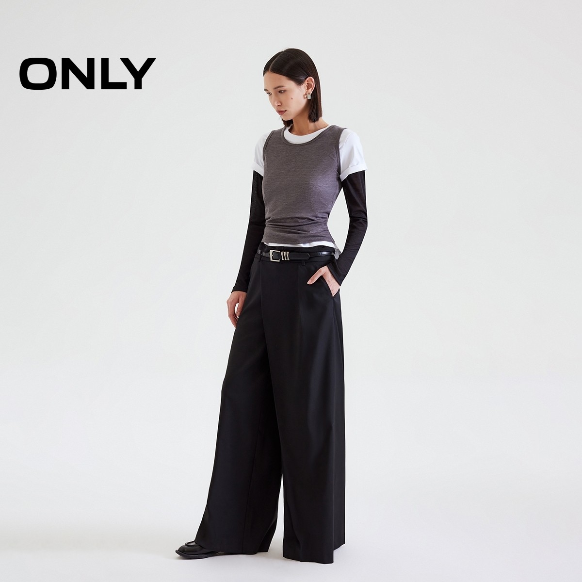 ONLY2026春季新款垂坠感西装面料宽松直筒裤长裤休闲裤女