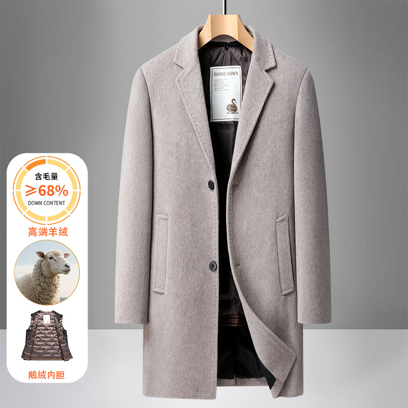 秋冬新款羊毛呢大衣中长款西装领可脱卸鹅绒内胆休闲男士羊绒