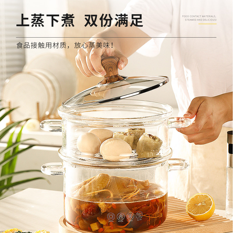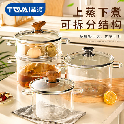 华派养生锅高硼硅玻璃带蒸屉