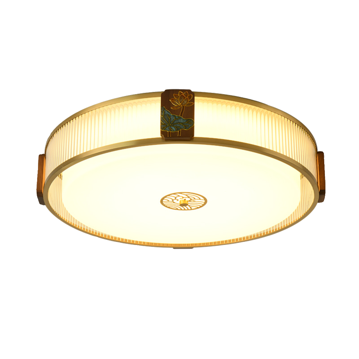 新中式卧室灯圆形全铜客厅吸顶灯护眼全光谱书房餐厅房间主卧灯具