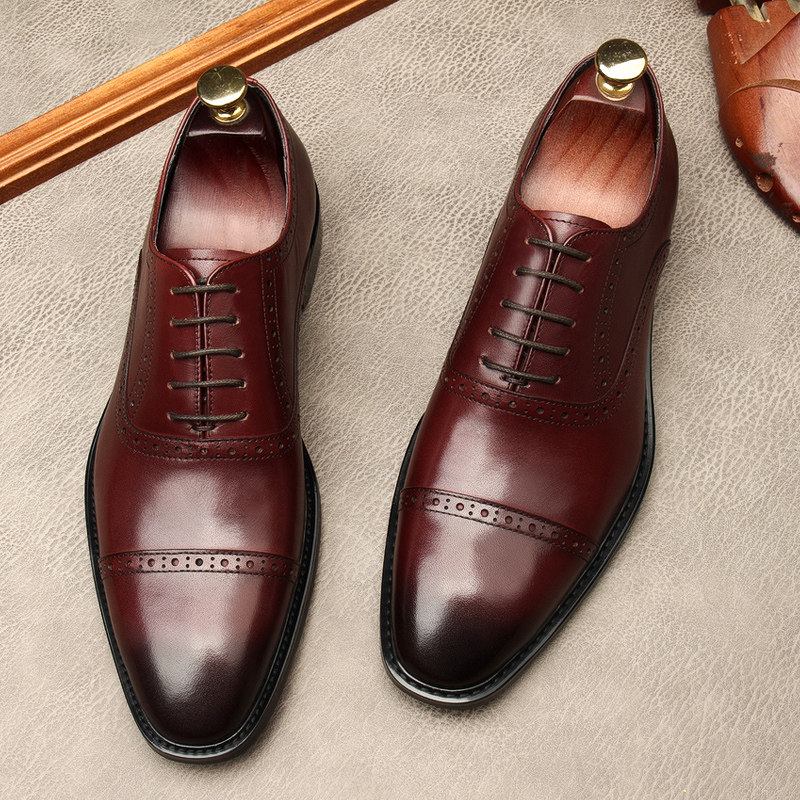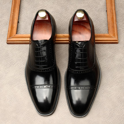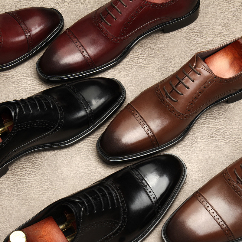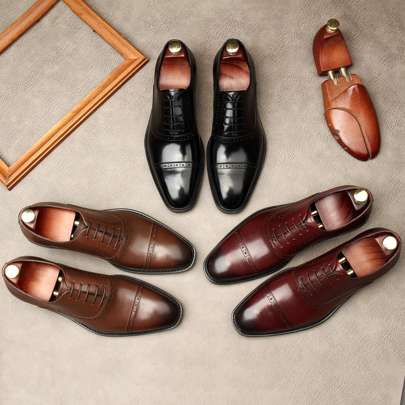 新款商务正装皮鞋男真皮尖头系带布洛克复古雕花男鞋办公室鞋子男
