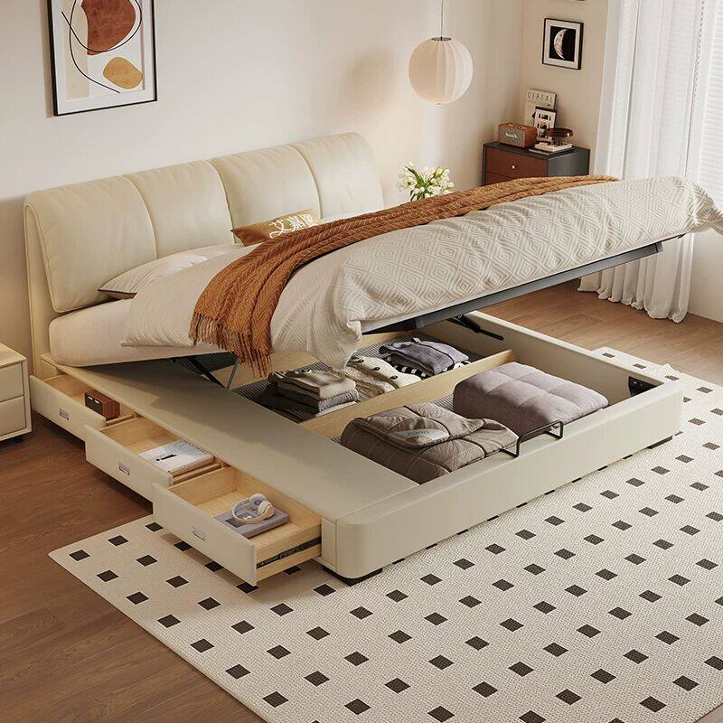 源氏木语官网大象耳朵真皮床高箱储物收纳主卧双人床现代简约抽屉