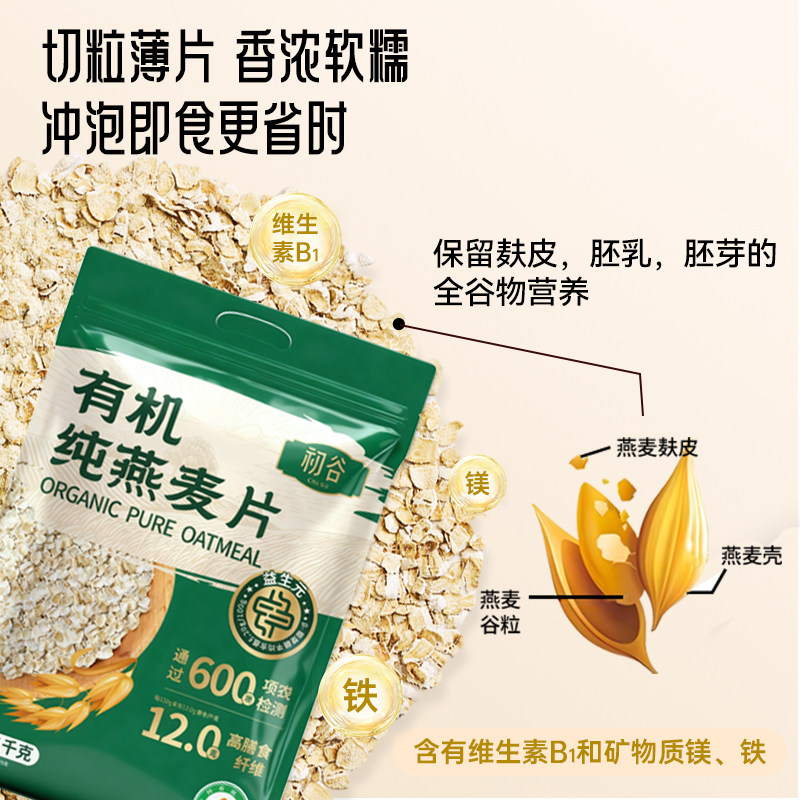 初谷有机纯燕麦片原味孕妇无添加蔗糖即食营养早餐代餐冲饮燕麦片