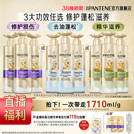 【店播专属】潘婷三分钟奇迹茉莉山茶花苍兰香洗发水女洗头膏蓬松
