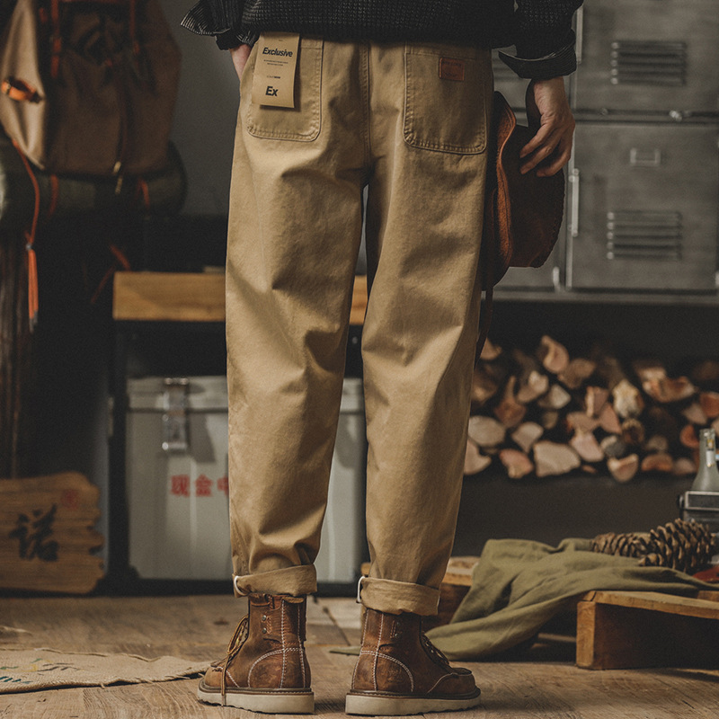 美式工装复古卡其色裤子男秋季2025新款简约百搭休闲裤直筒工装裤
