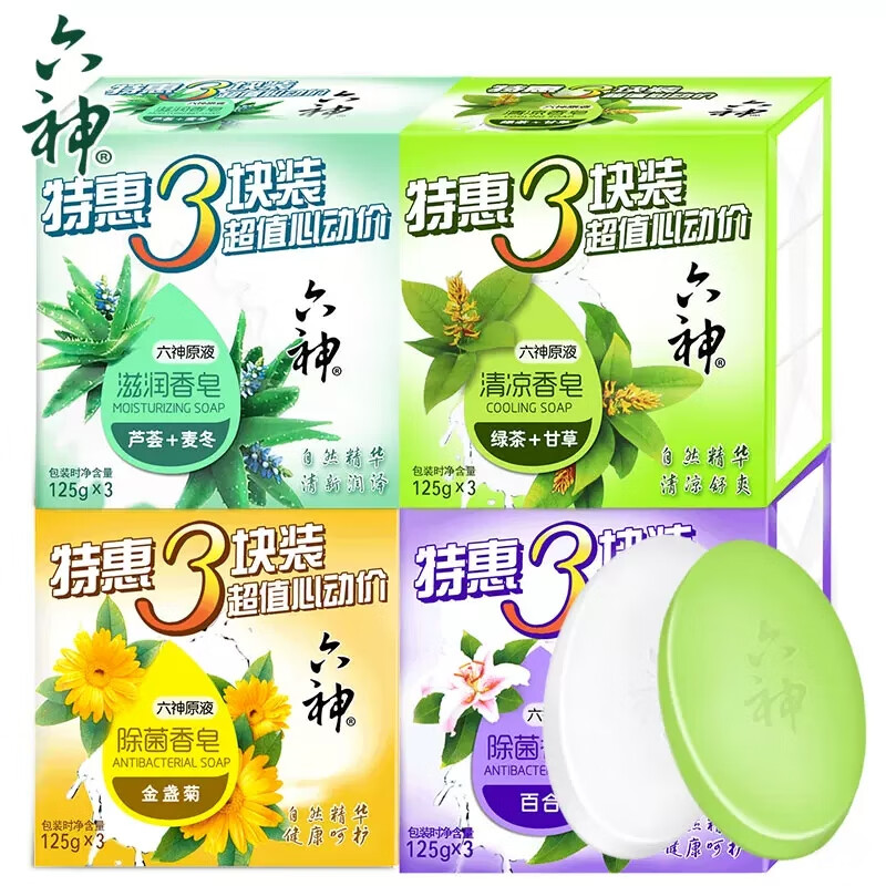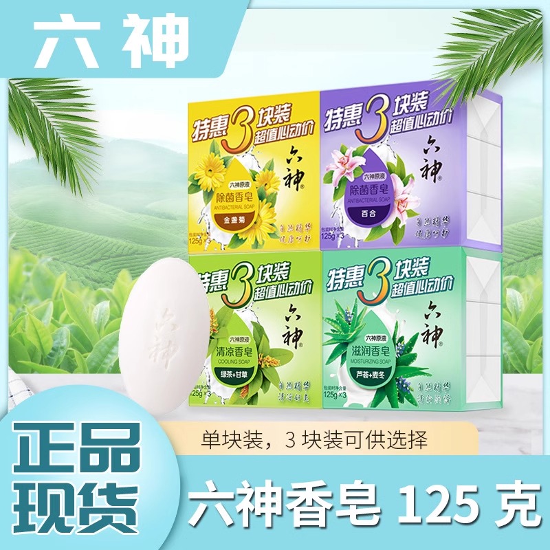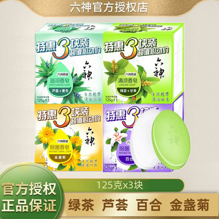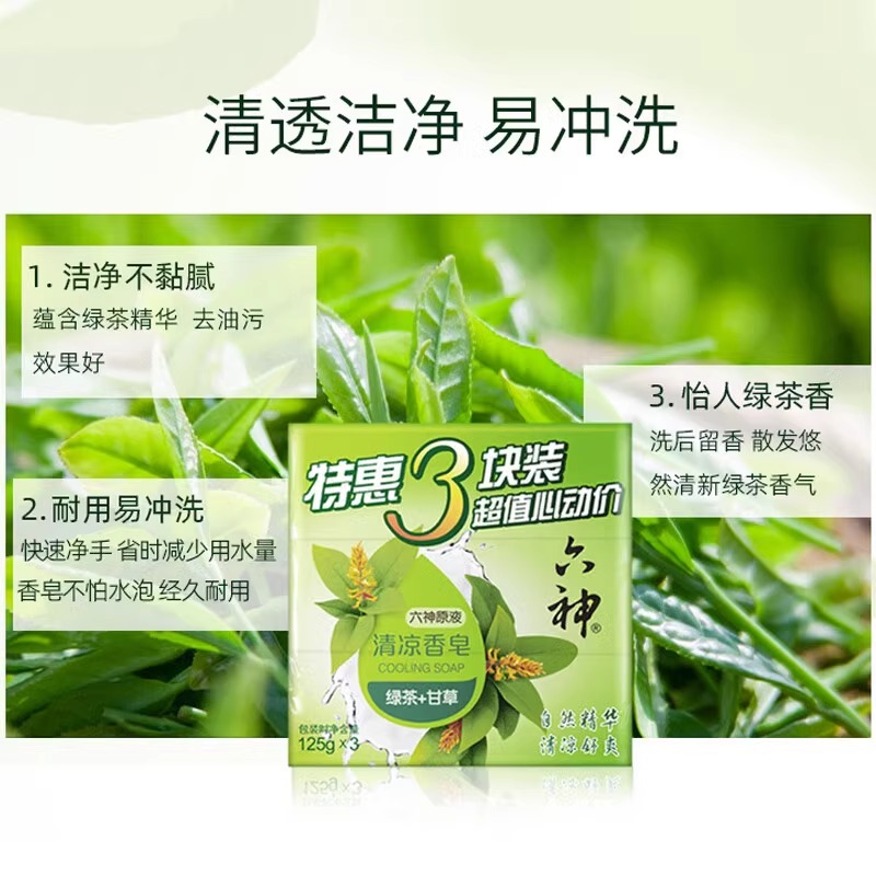 六神香皂沐浴洗澡肥皂洁面皂125g*3块成人男女家庭装绿茶清凉除菌