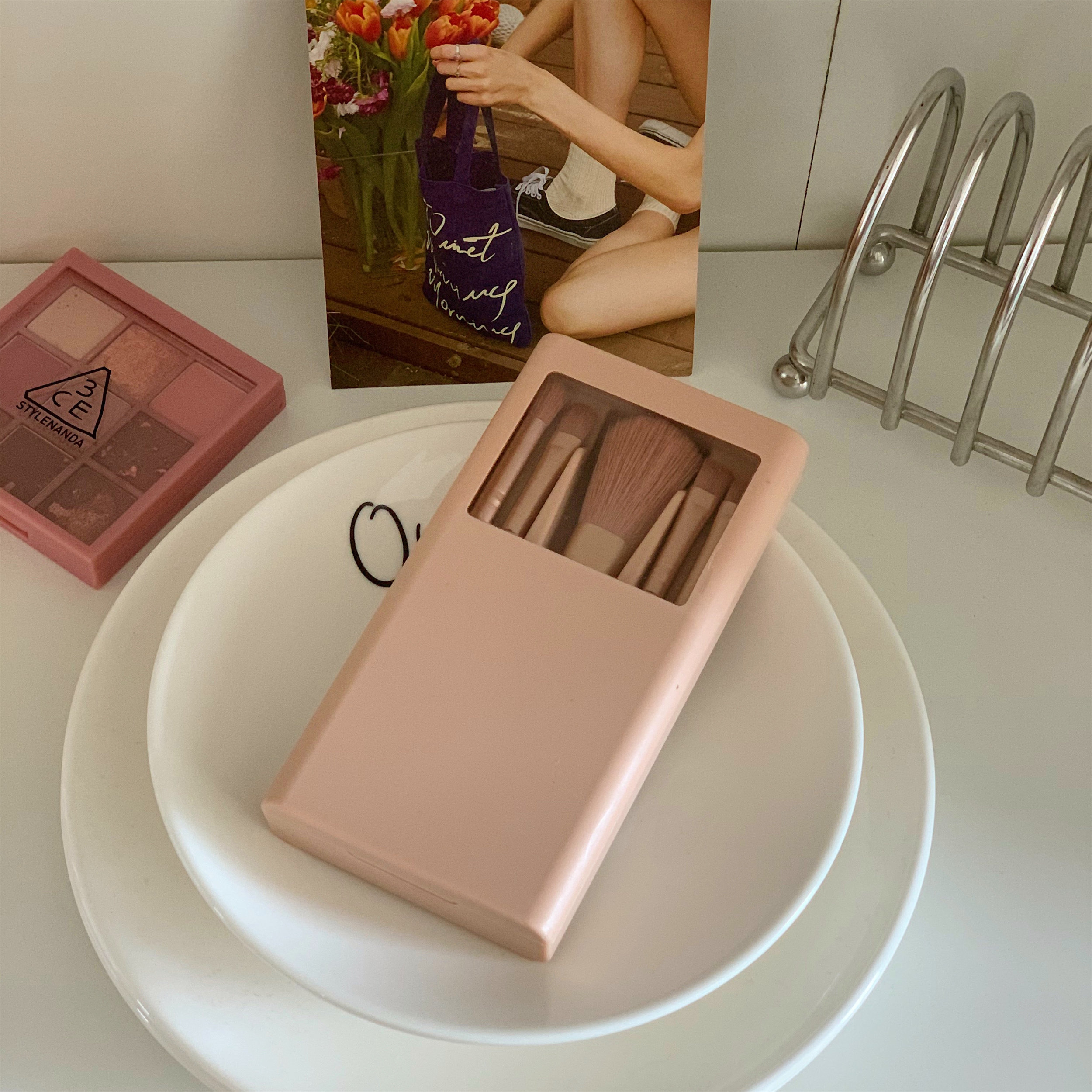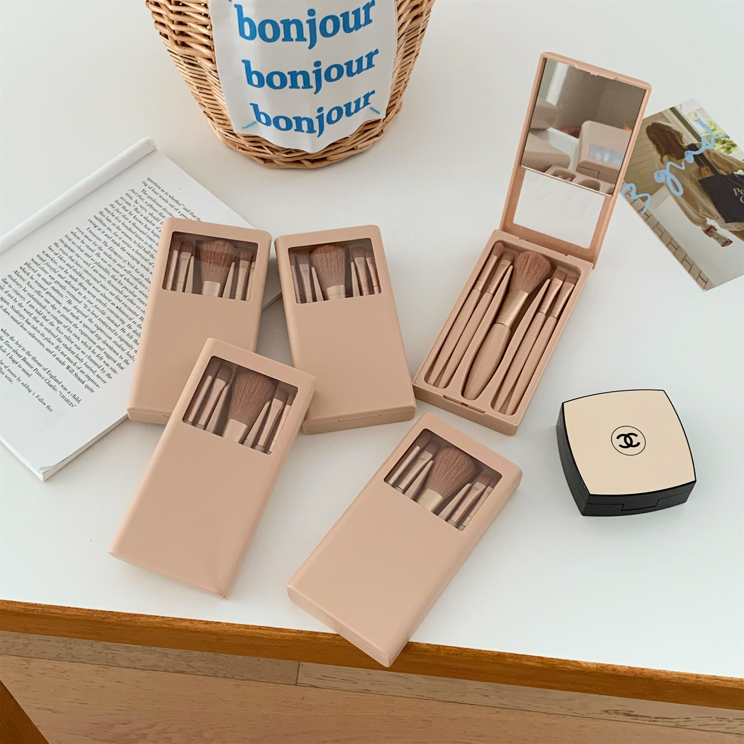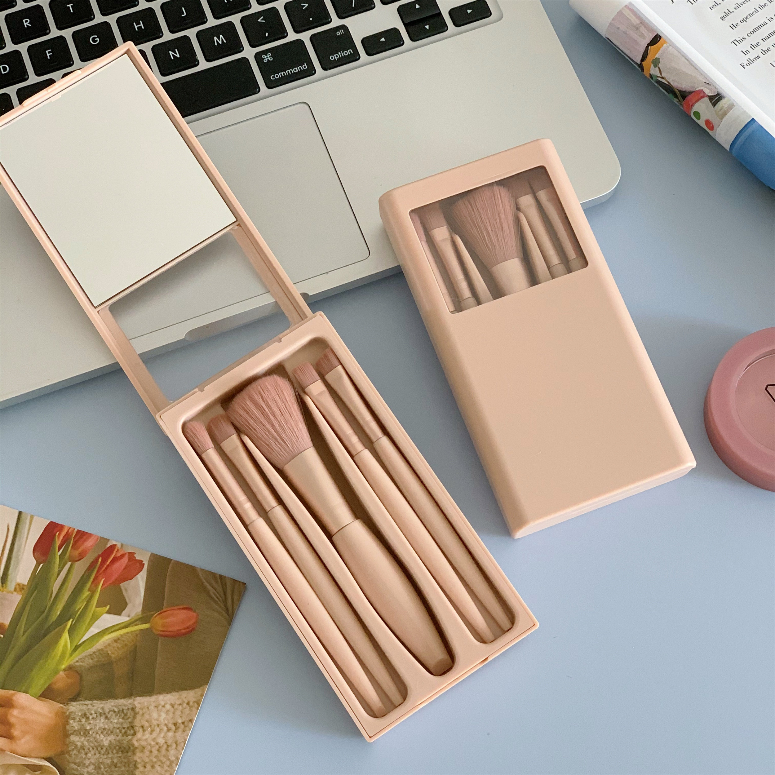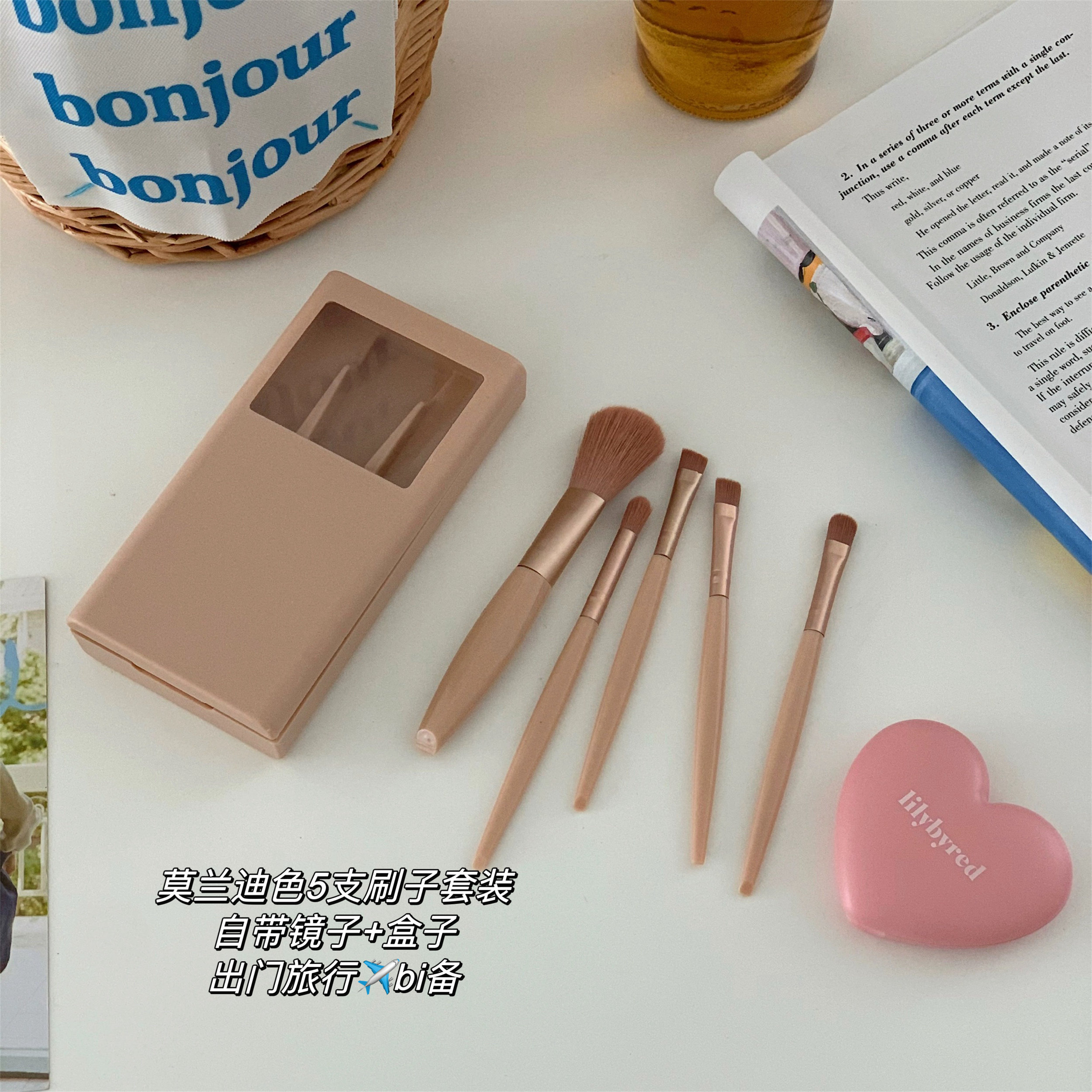 迷你便携化妆刷套装旅行全套5只装带镜子软毛粉底眼影刷散粉刷子