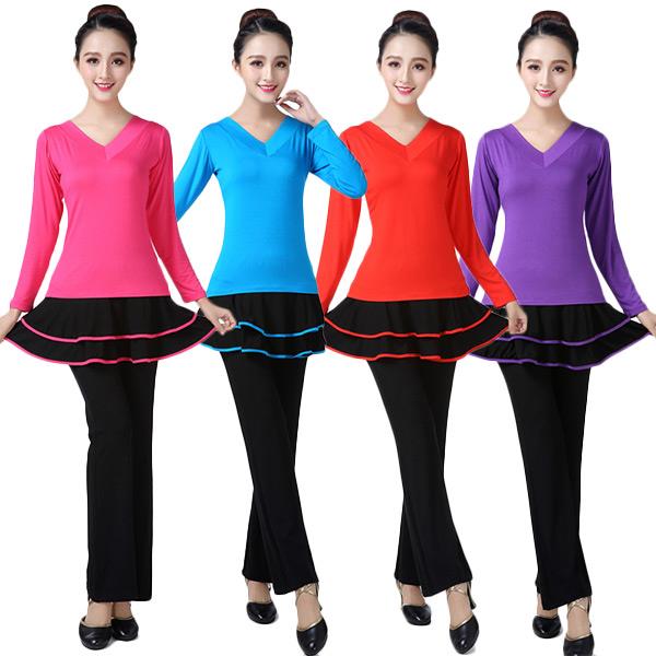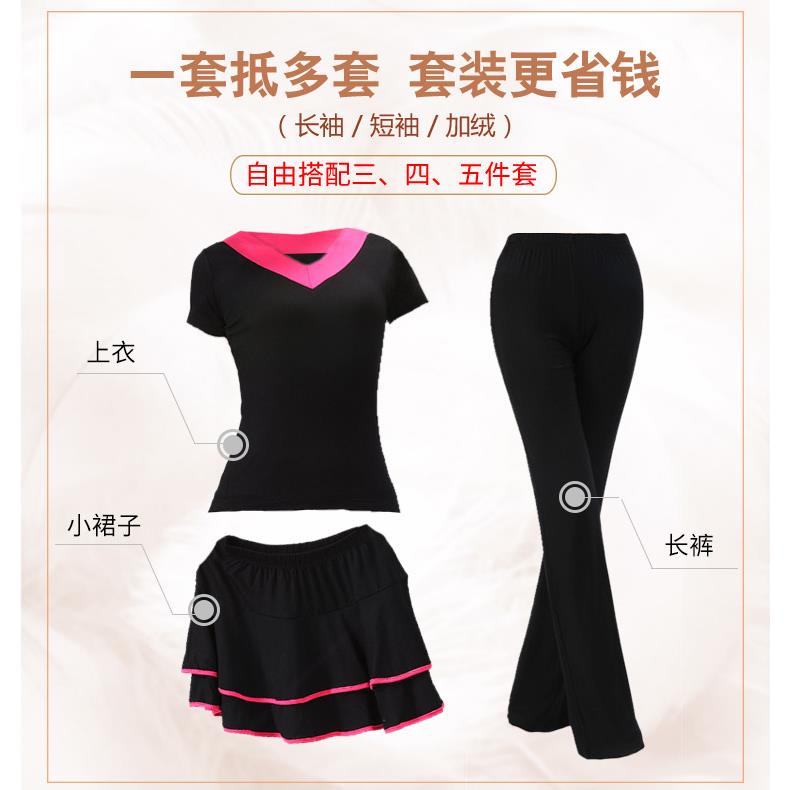 新款广场舞服装新款套装中老年莫代尔V领短袖三件套杨丽萍跳舞衣
