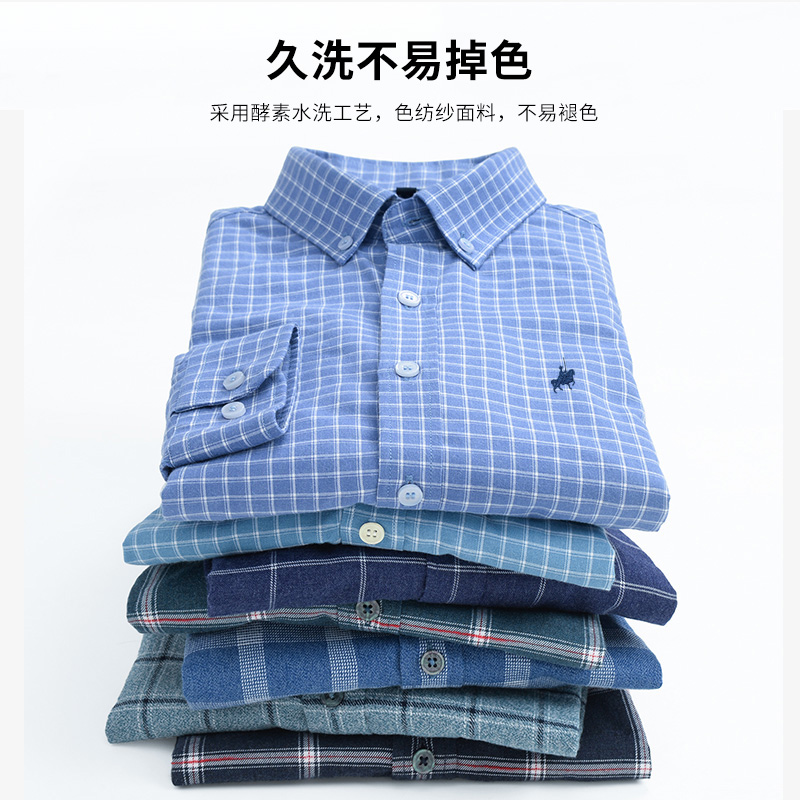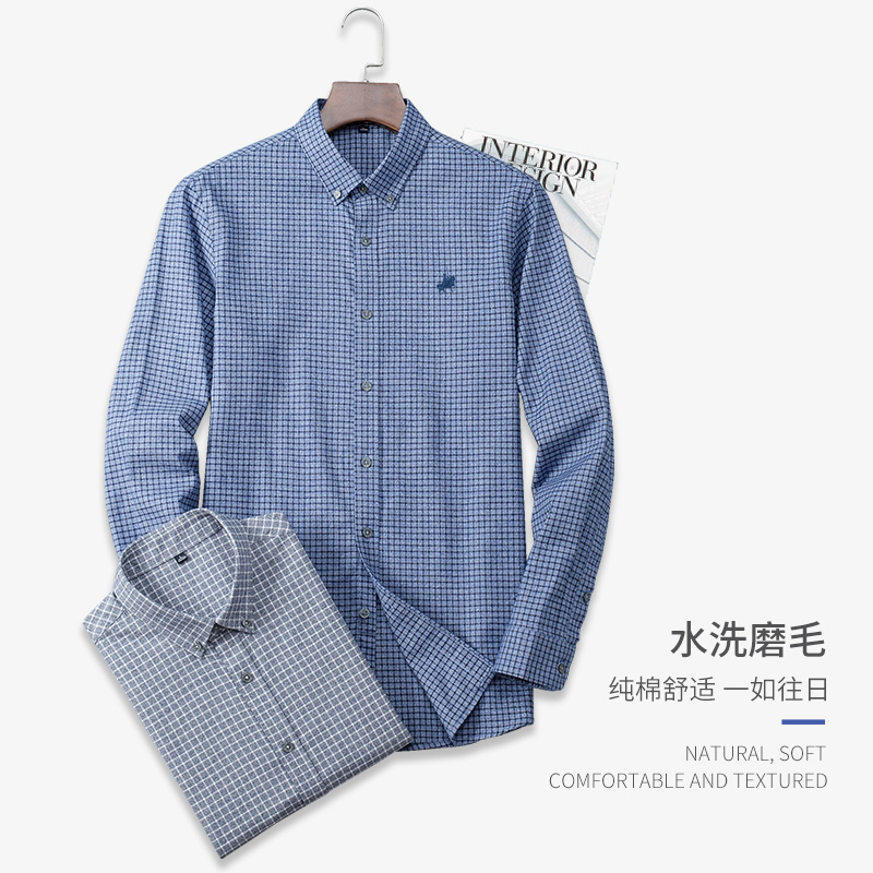 【纯棉】罗蒙长袖衬衫男士秋季新款修身格子衬衣商务工装磨毛上衣