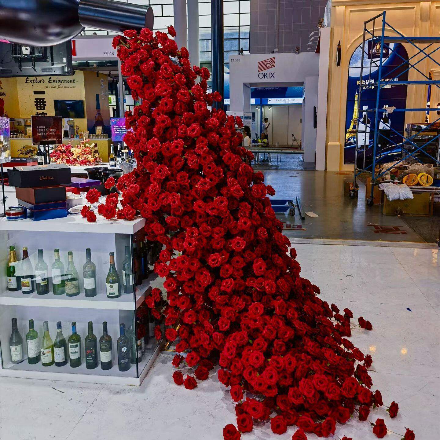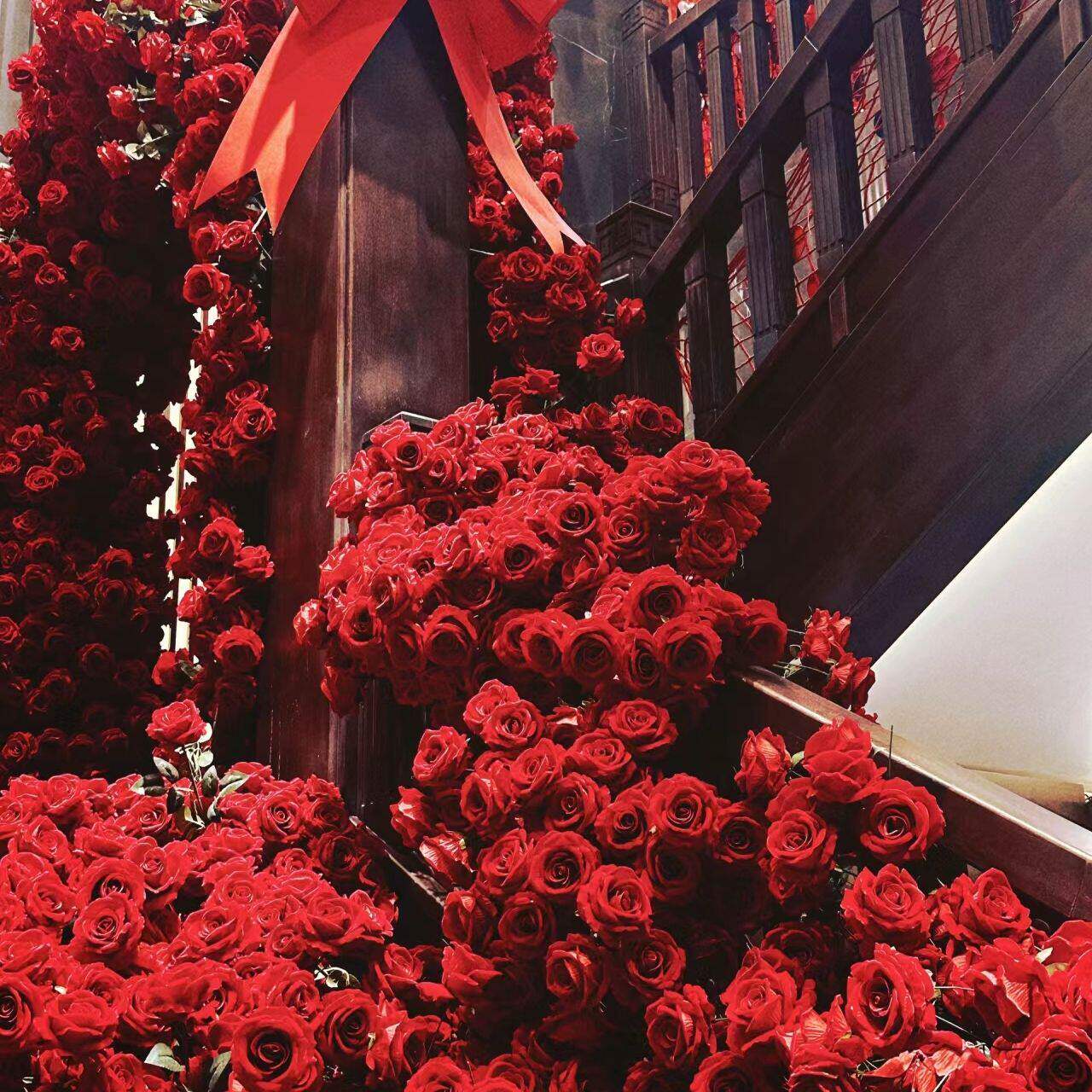 玫瑰瀑布商场引流仿真布置背景装饰网红玫瑰花打卡花墙情人节拍照