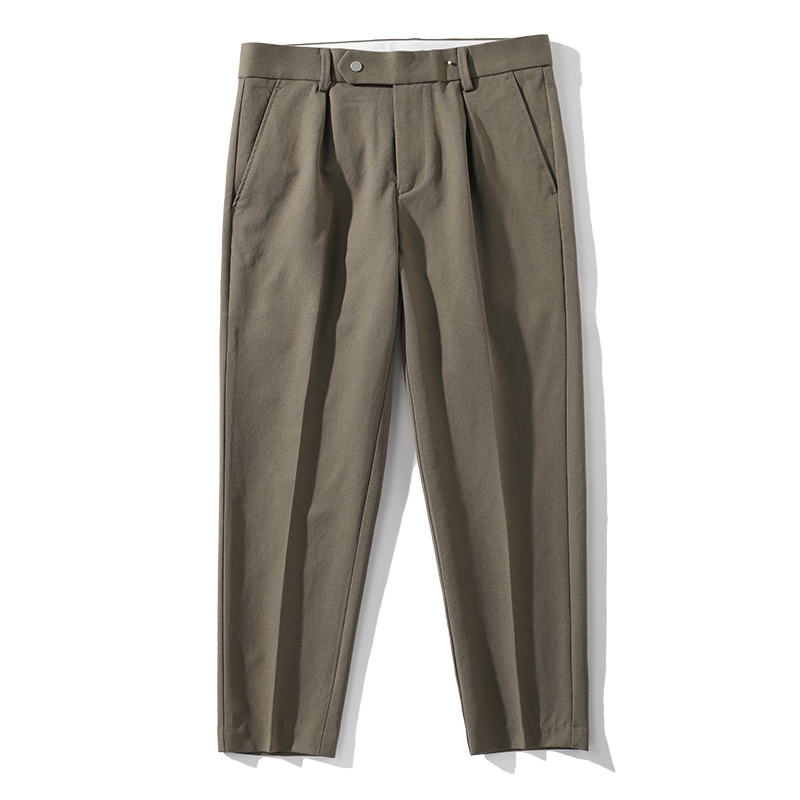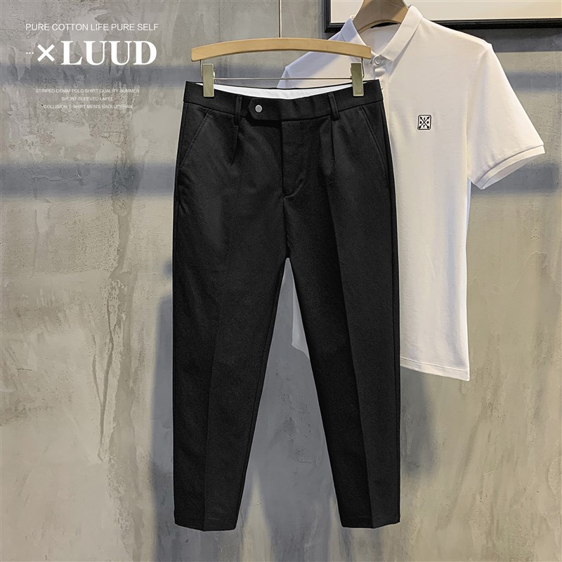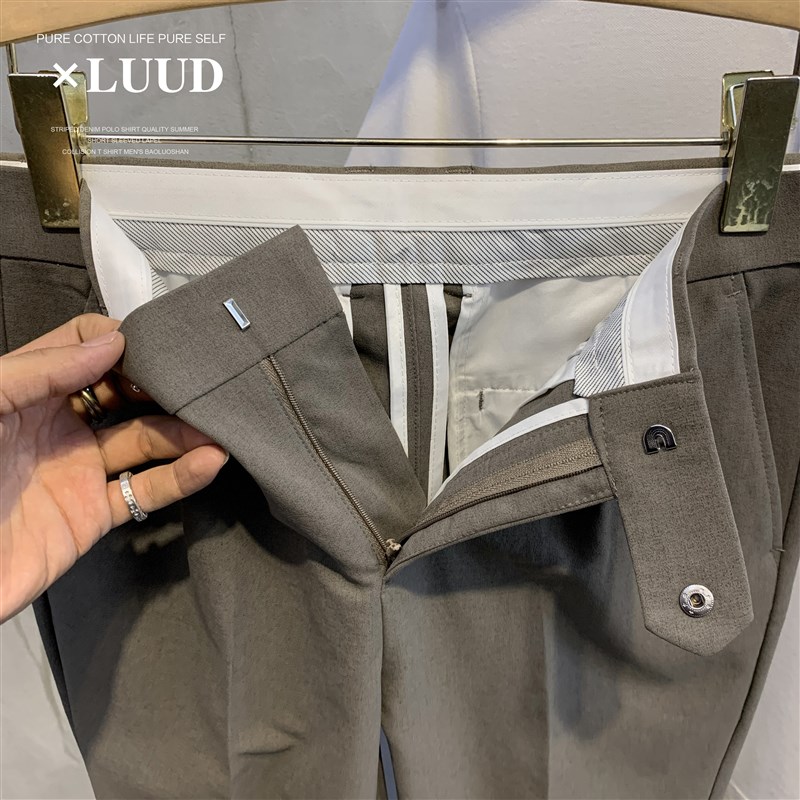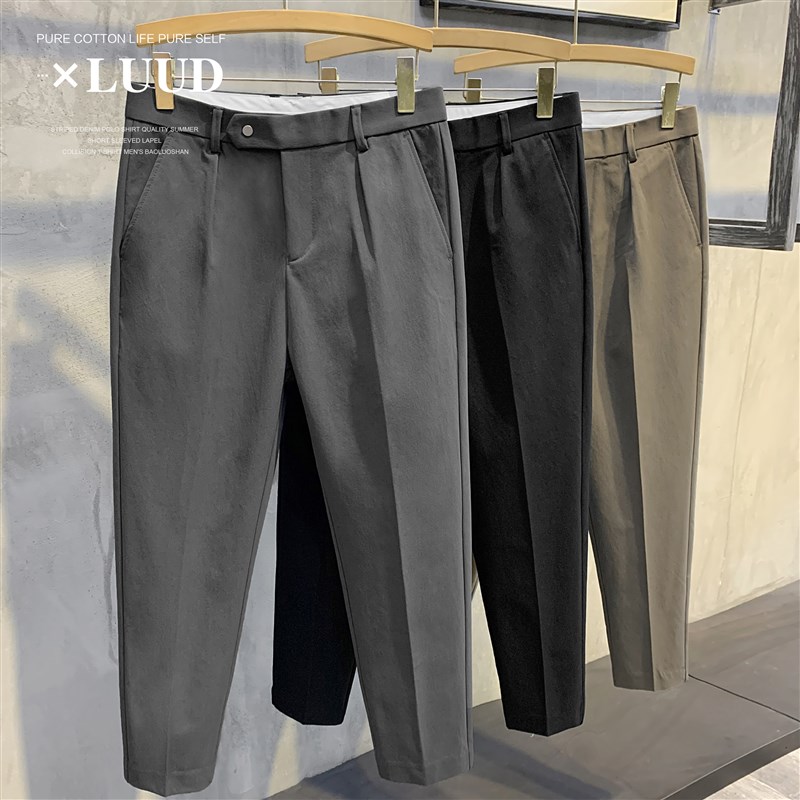 LUUD 秋季英伦风裤头暗扣设计男西裤潮流纯色百搭修身小脚九分裤
