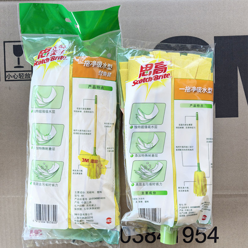 3M思高黄色无纺布拖把头一拖净吸水型拖把替换头不掉毛替换拖把头