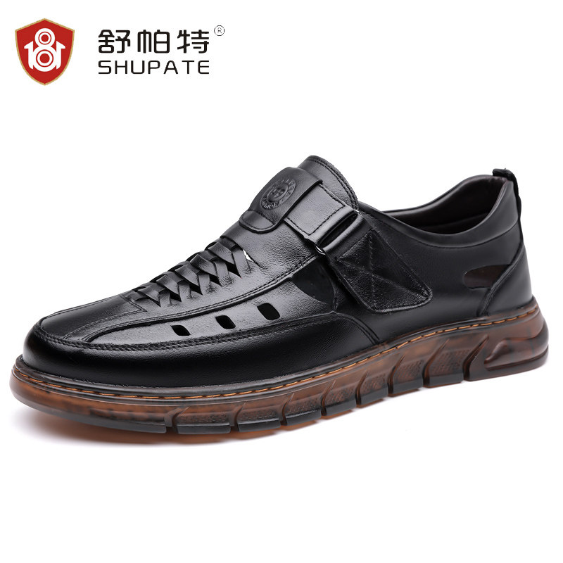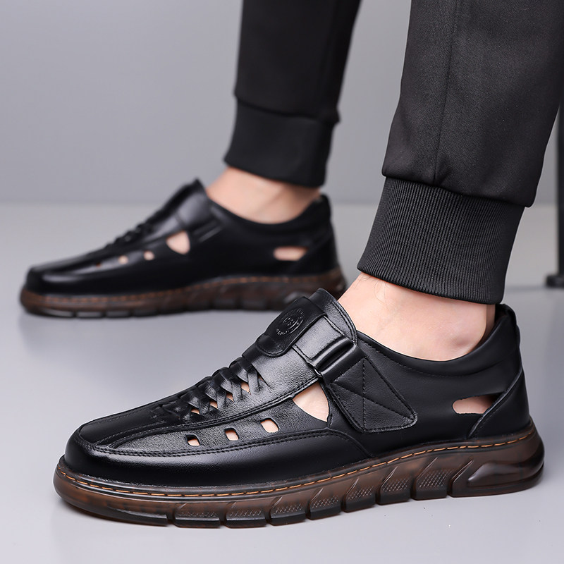 凉鞋男2025新款夏季真皮透气男士休闲鞋软底软面镂空洞洞爸爸鞋子