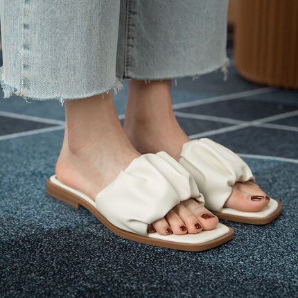 云朵感2026春季新款软糯糯!方头平底一字懒人拖鞋女夏外穿凉拖