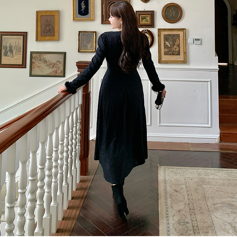 大码女装高级感法式复古蕾丝连衣裙胖mm显瘦茶歇气质收腰长裙1971