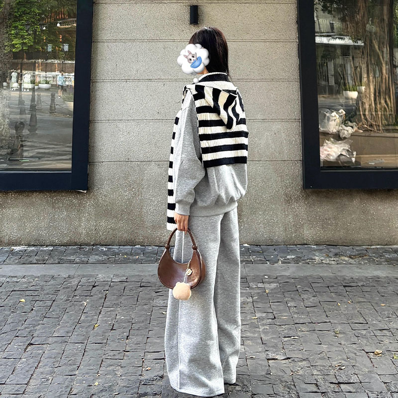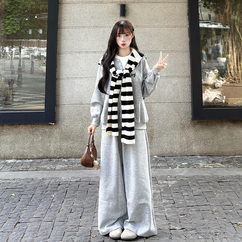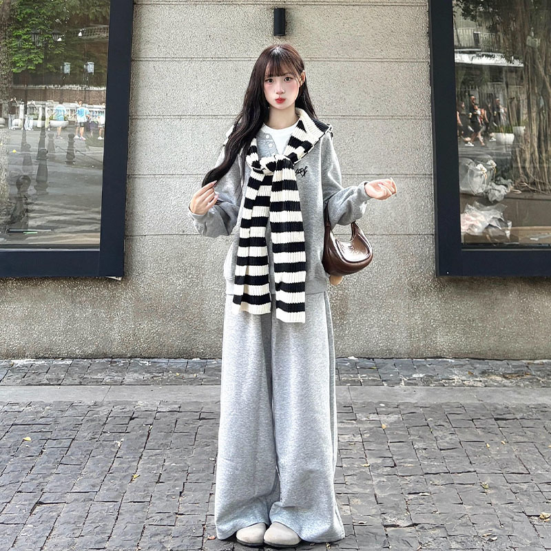 巨好看的秋冬小个子穿搭一整套时尚休闲卫衣披肩阔腿裤三件套装女
