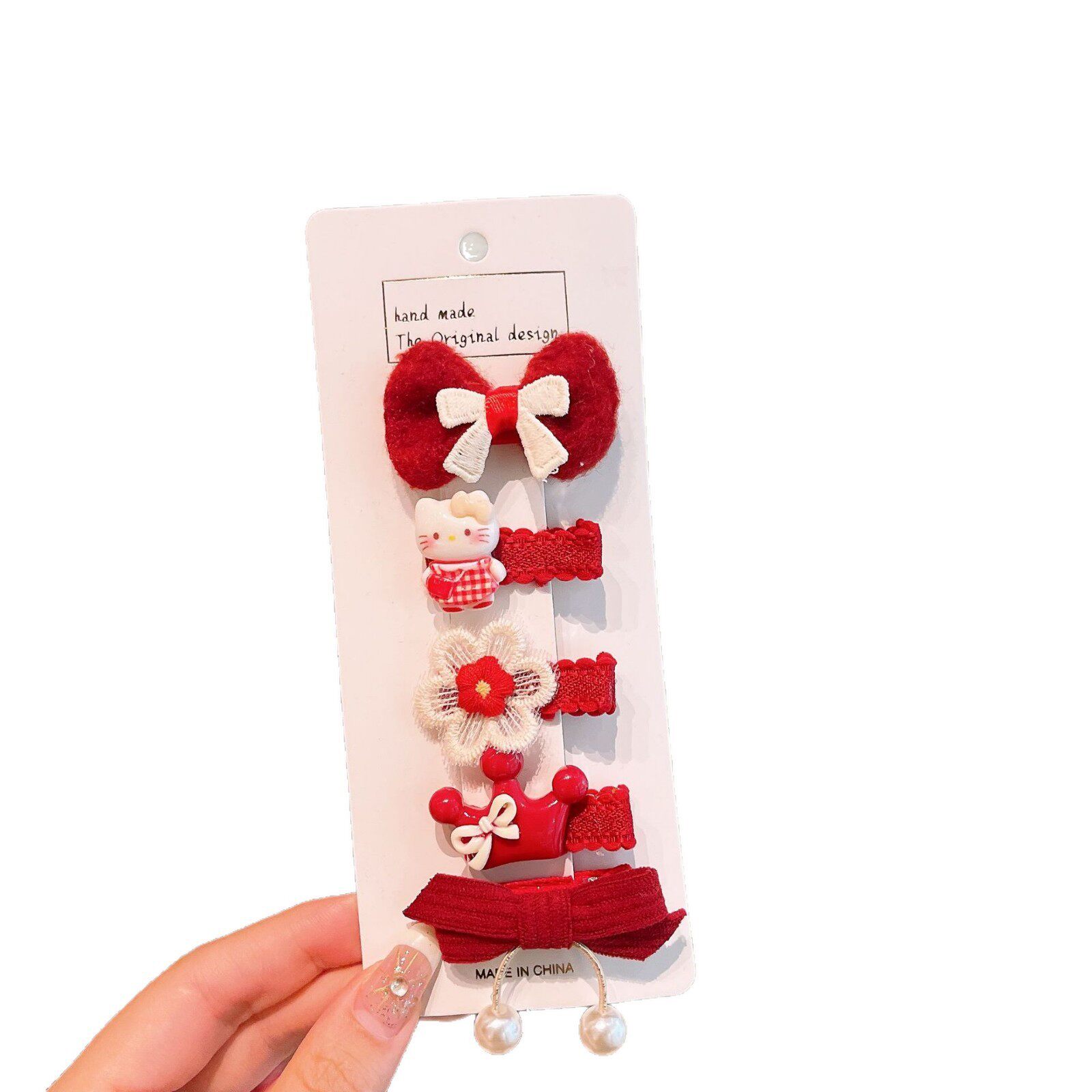 新年红可爱儿童蝴蝶结发夹女童花朵卡通侧边夹宝宝过年鸭嘴夹头饰