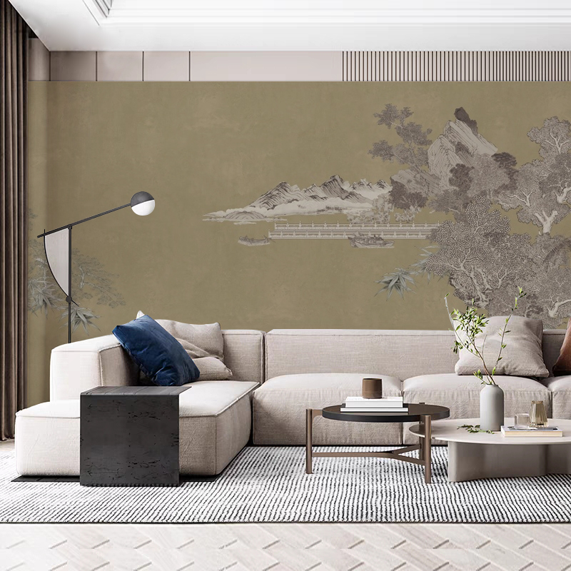 热销现代新中式轻奢定制墙纸酒店客厅卧室电视沙发背景墙壁画墙布