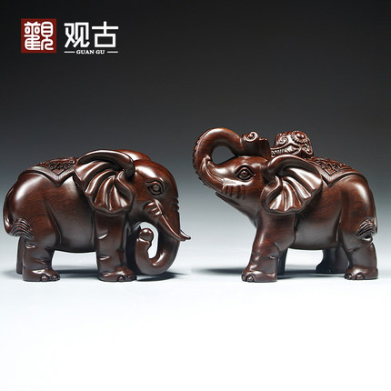 黑檀木雕大象摆件一对实木家居客厅电视柜装饰红木工艺品开业送礼