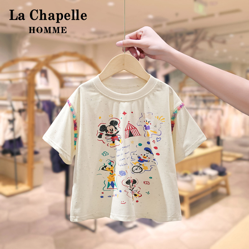 拉夏贝尔女童夏季短袖T恤中长款2025儿童宝宝迪士尼半袖上衣t裙潮