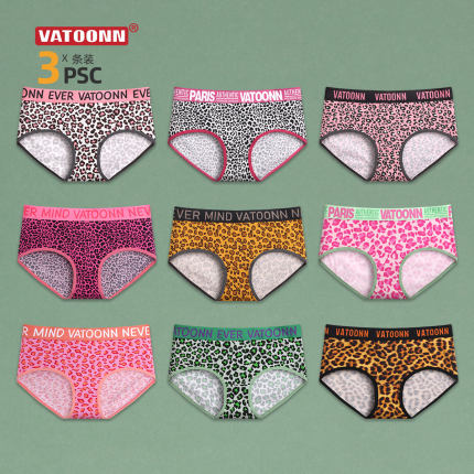 豹纹内裤女纯棉印花中腰收腹
