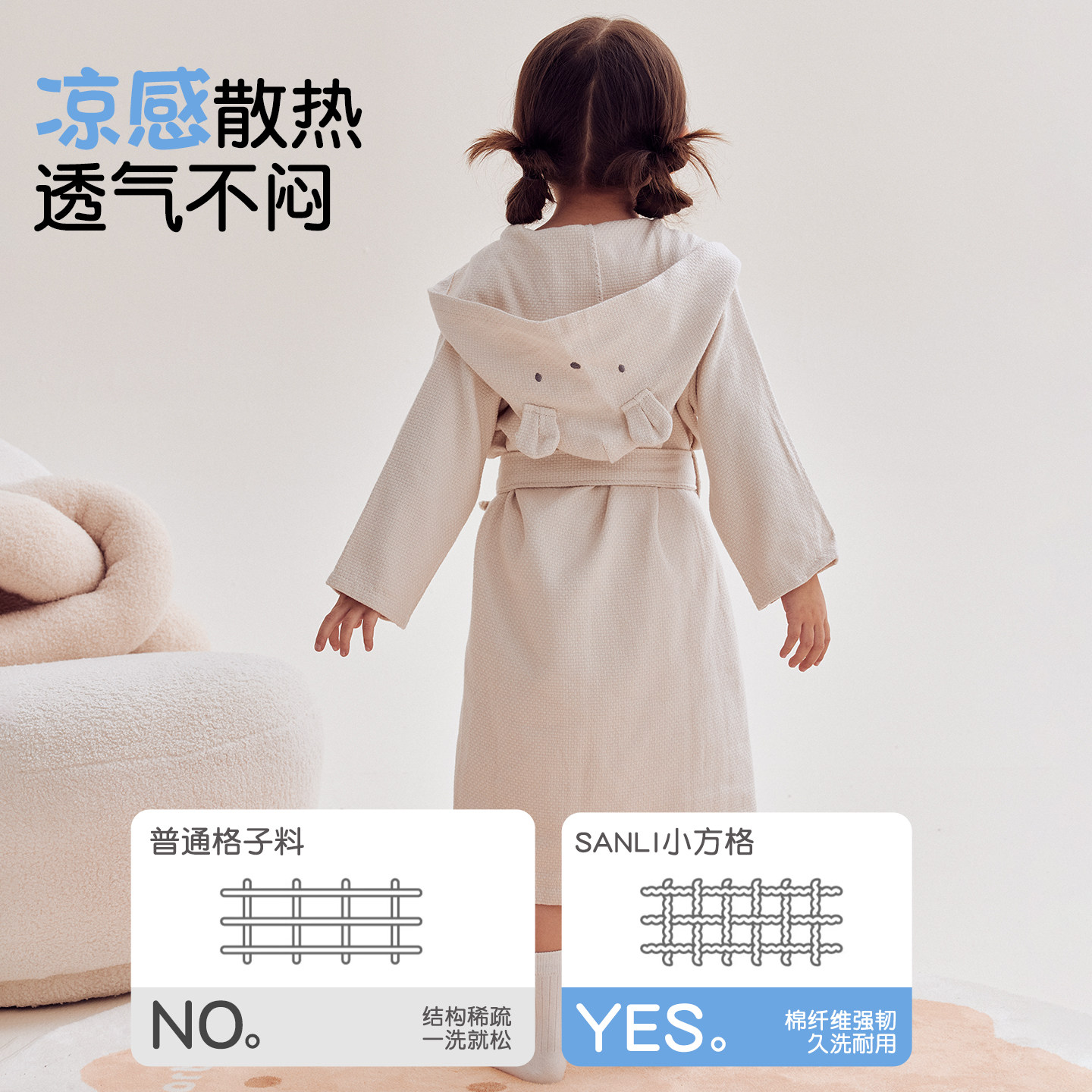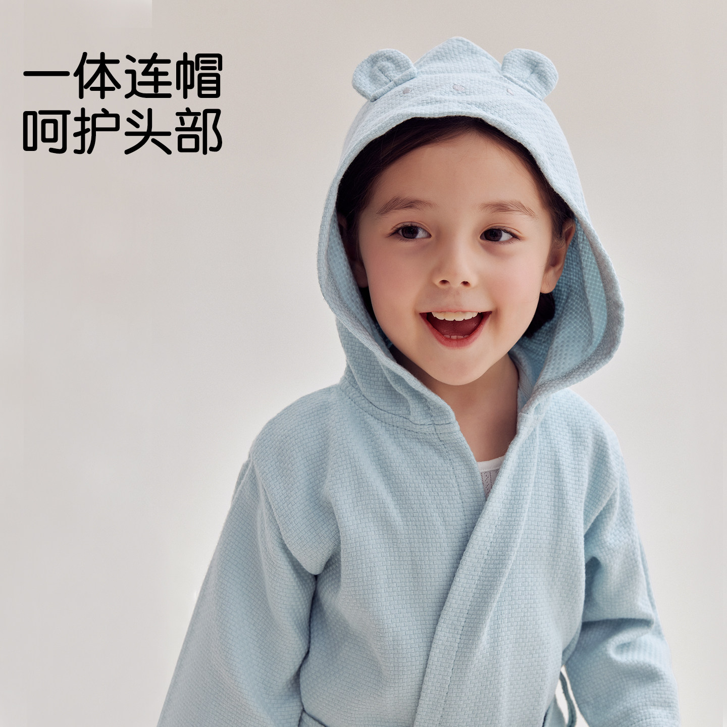 三利儿童浴袍女童男四季带帽睡袍纯棉浴衣吸水速干宝宝浴巾斗篷