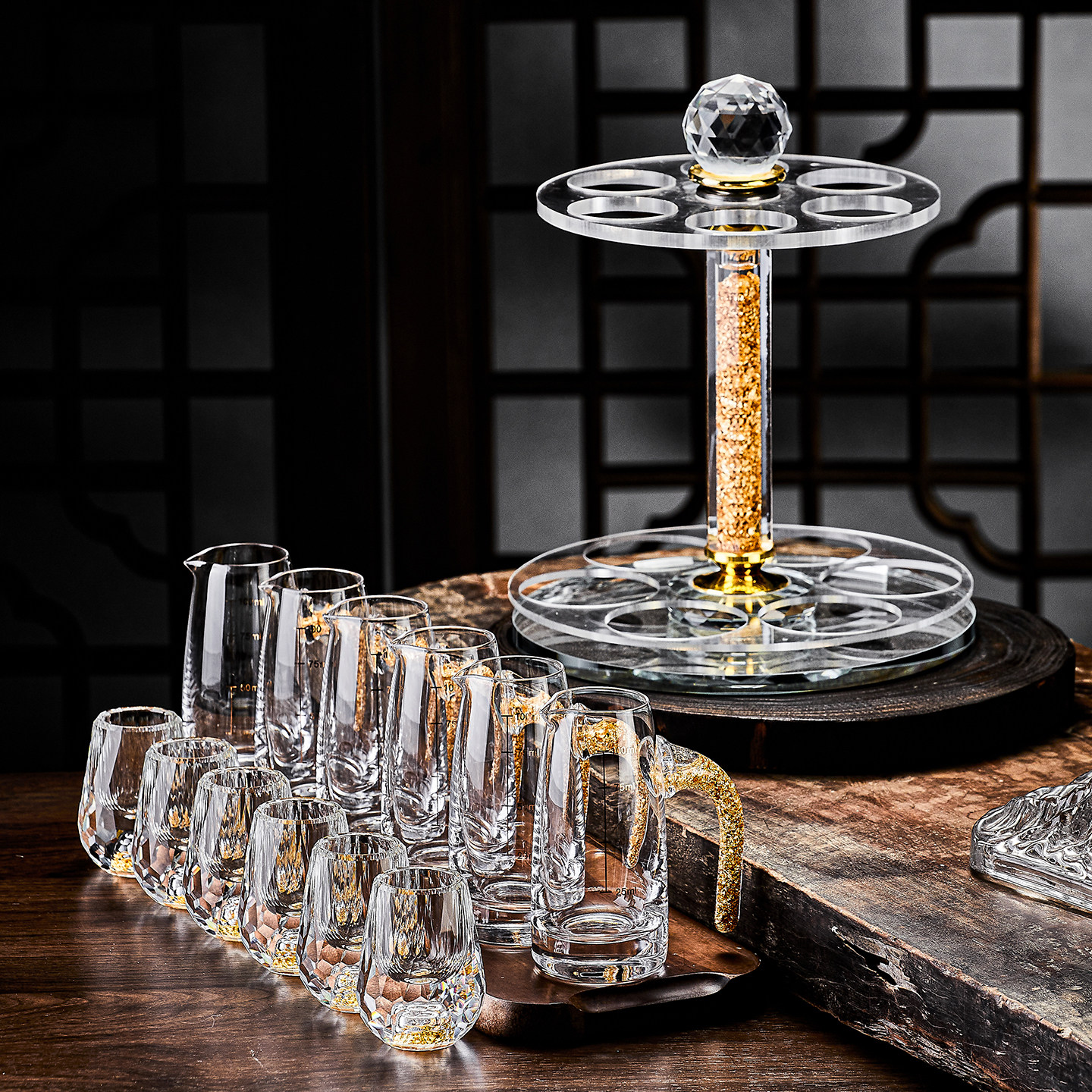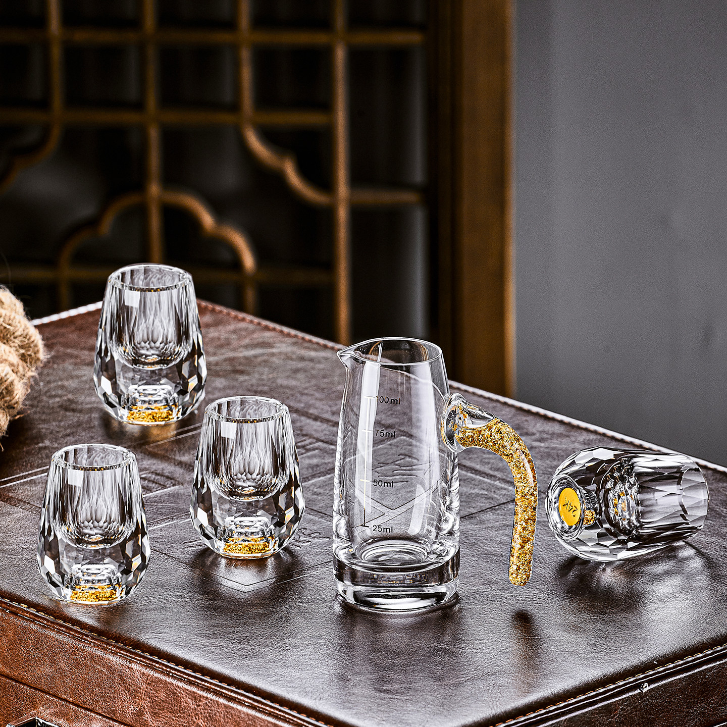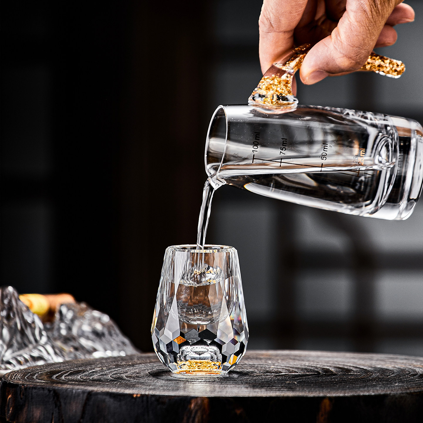 水晶金箔白酒杯套装创意带刻度分酒器家用轻奢高档精致高级感酒具