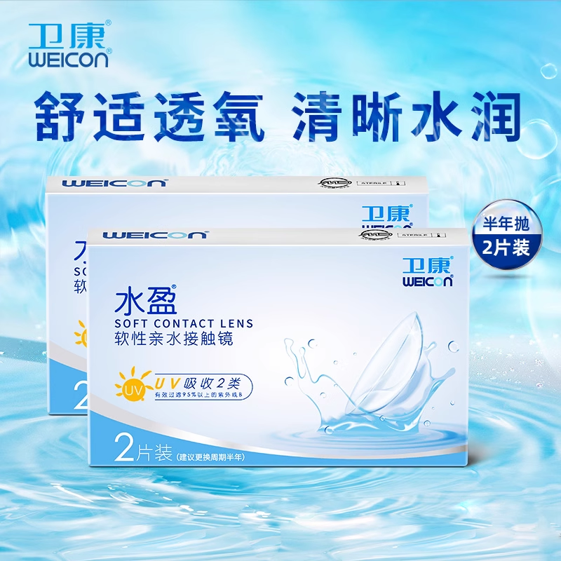 卫康水盈隐形眼镜半年抛2片水润舒适高清透氧轻薄抗uv水凝胶