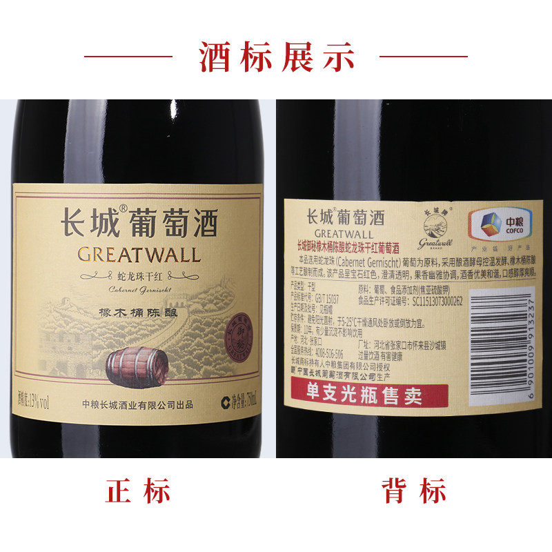 中粮长城干红葡萄酒御秘陈酿蛇龙珠橡木桶国产红酒送礼
