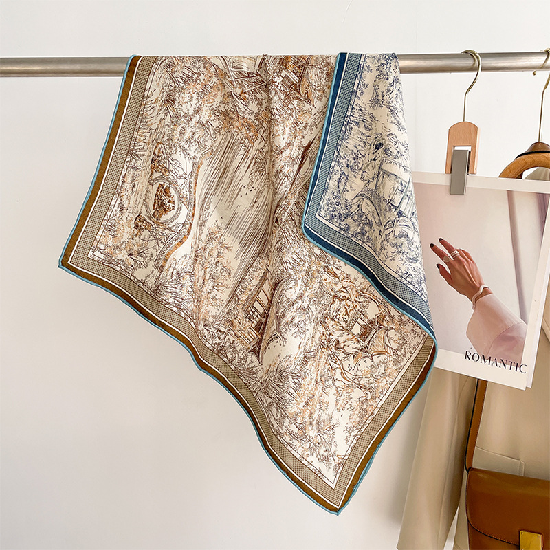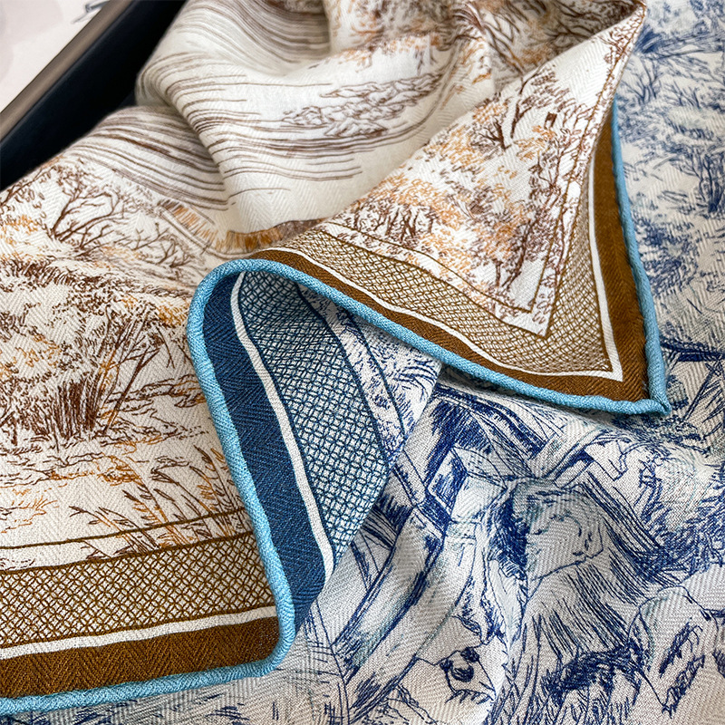 日本品质2025春秋冬新款高档真丝羊毛围巾女时尚气质印花披肩双面