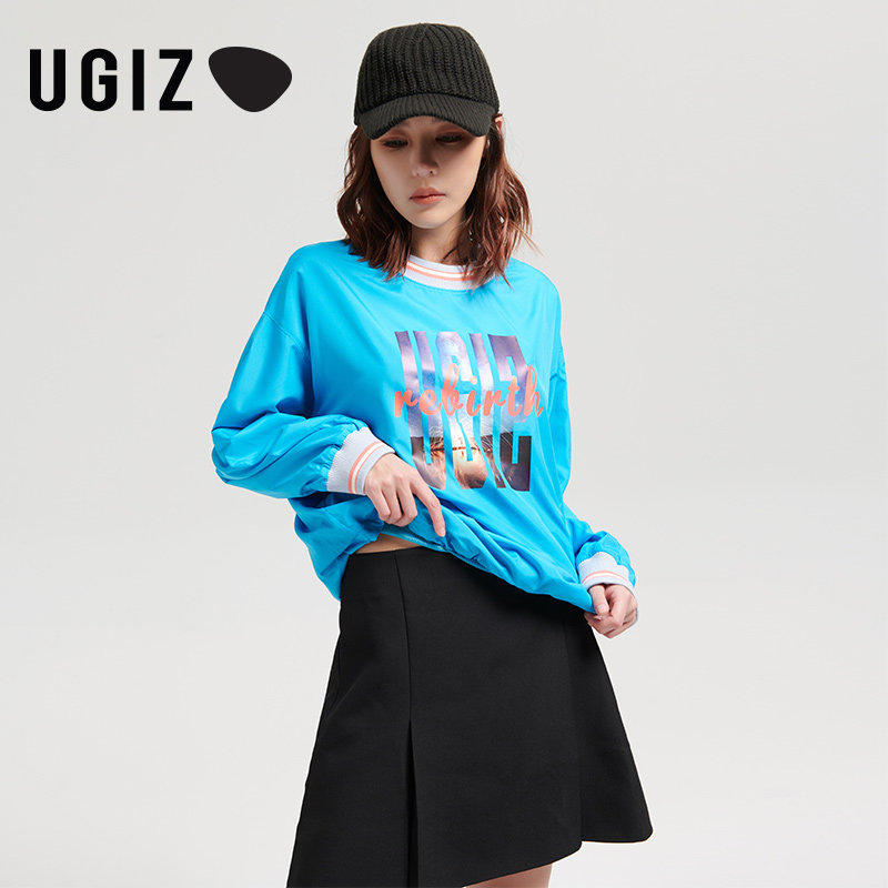 UGIZ春秋季新品韩版女装宽松圆领休闲时尚字母套头卫衣女UCTD806