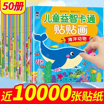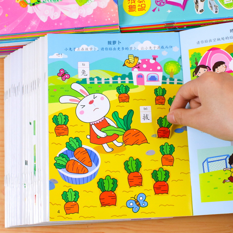儿童贴画启蒙贴纸书专注力贴贴画0-1-2-3-4-6岁宝宝益智卡通反复粘贴贴纸早教玩具幼儿左右大脑全脑开发训练