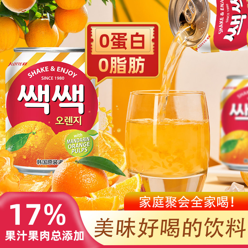 韩国原装进口乐天LOTTE饮料葡萄果肉芒果网红整箱果味饮品罐装