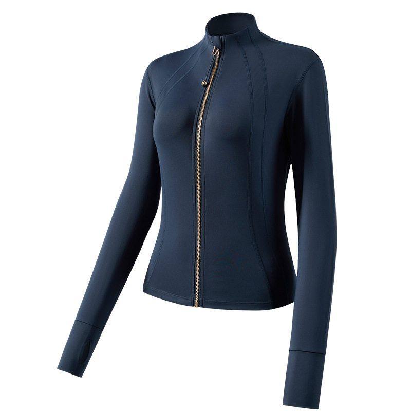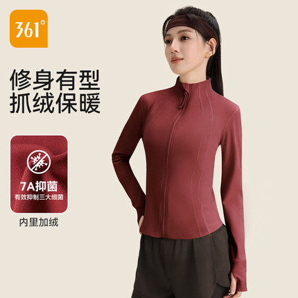 361运动外套女秋冬加绒厚健身服跑步训练蓝色修身瑜伽服长袖上衣