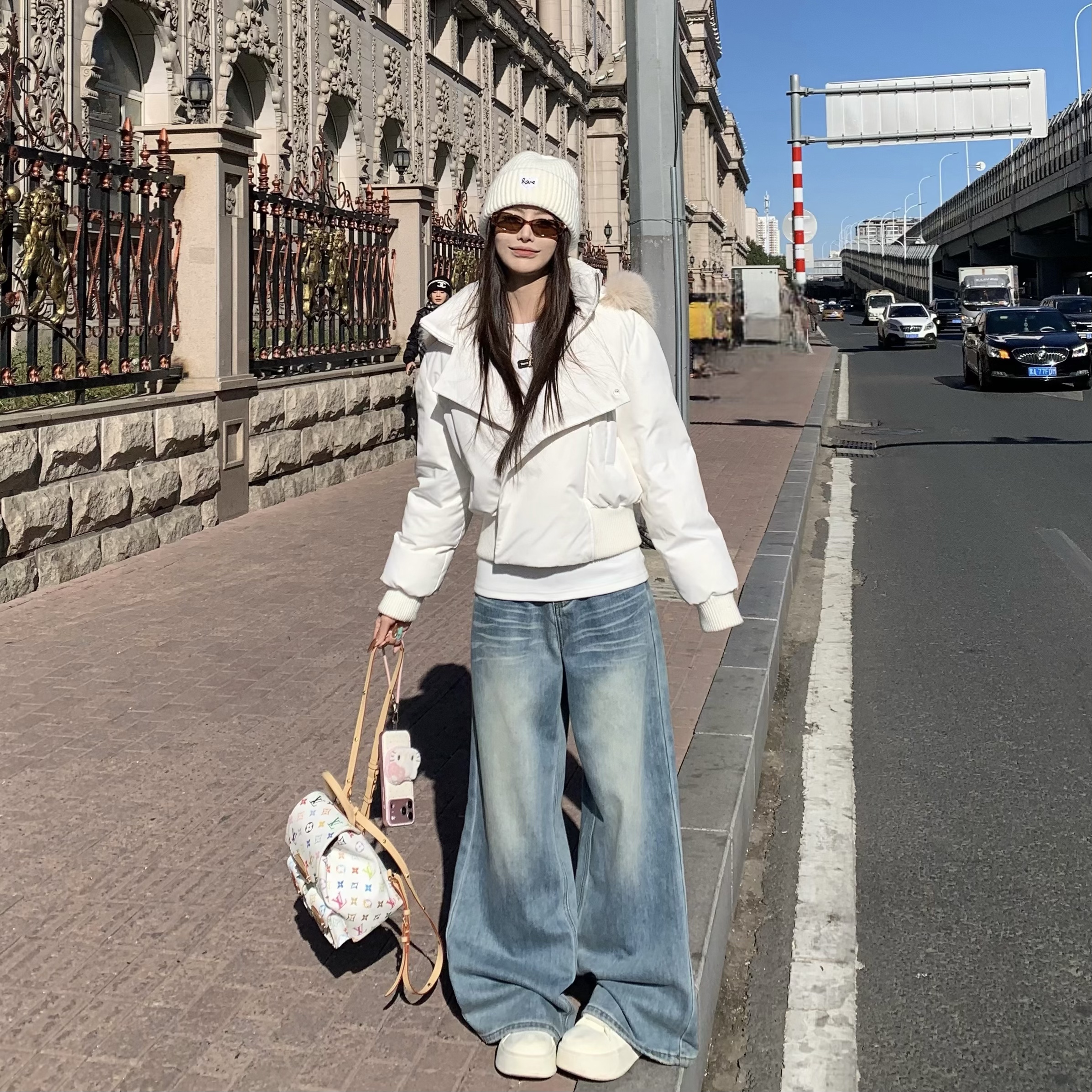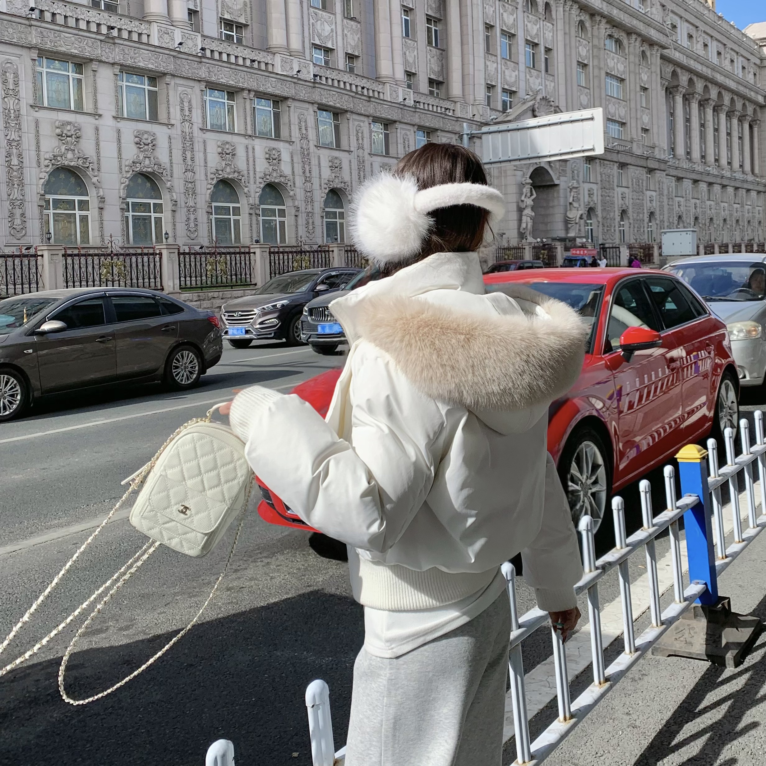 3MER哦哦三妹 大毛领90白鸭绒白色短款羽绒服女冬季保暖连帽外套