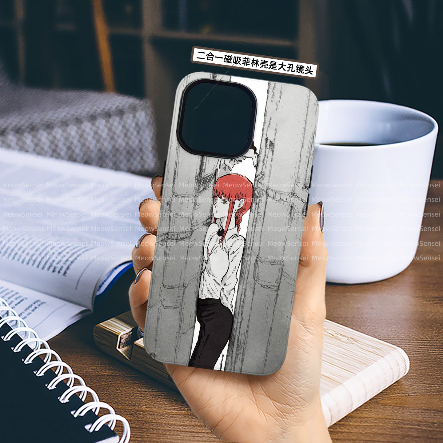 玛奇玛卡住了电锯人手机壳适用苹果16小米15华为VIVO动漫二次元OPPO二合一磁吸菲林iPhone17ProMax防摔保护套