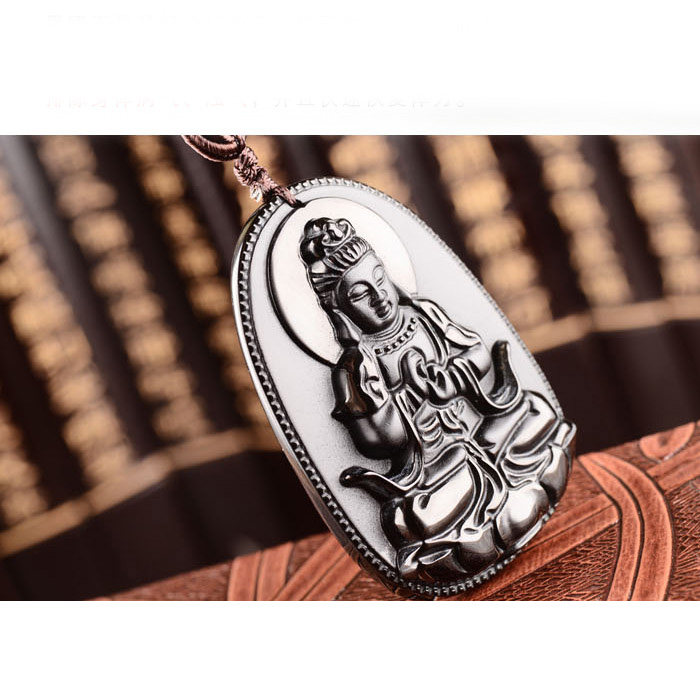 精雕磨砂天然黑曜石大日如来吊坠 属羊属猴本命佛守护神项坠