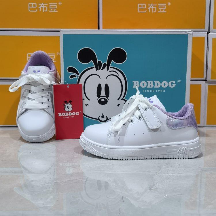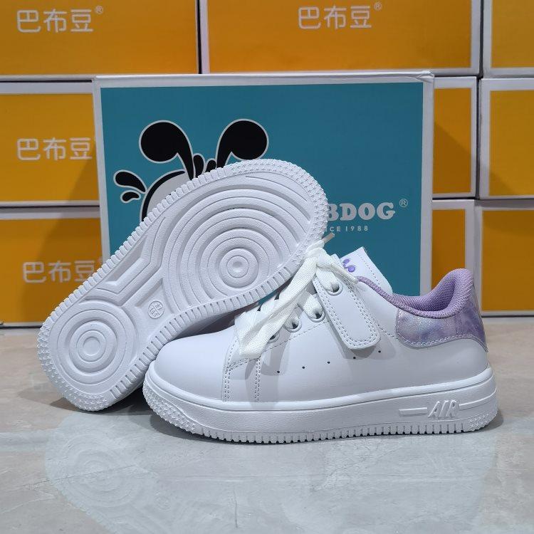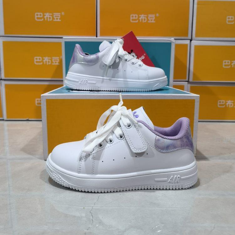 巴布豆童鞋四季款防水皮面女童板鞋魔术贴轻便儿童小白鞋宝宝休闲