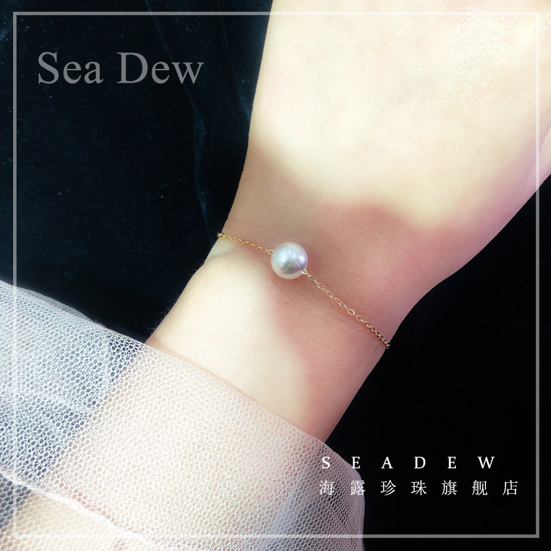 单颗 18K黄金akoya海水珍珠手链调节 天然彩金路路通灯泡带证书