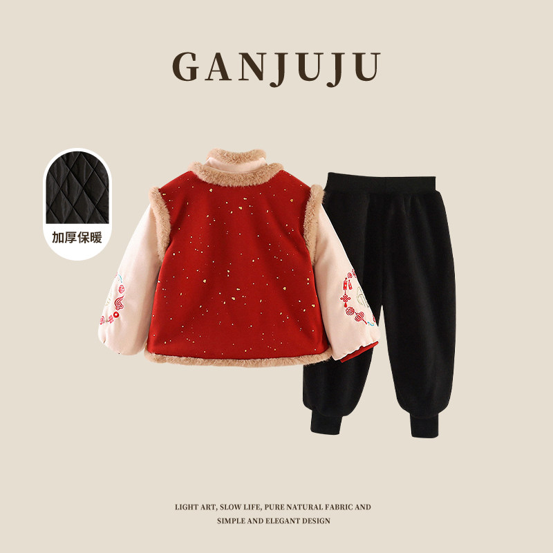 儿童喜庆新年棉服套装男童汉服宝宝冬季加厚唐装国风新中式拜年服