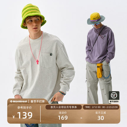 瞬时山野Monterest重磅305g户外抗菌防螨基础打底衫纯棉长袖T恤